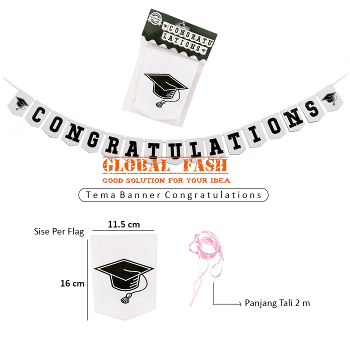 banner wisuda congratulations hitam putih toga / banner graduation hitam putih / banner wisuda