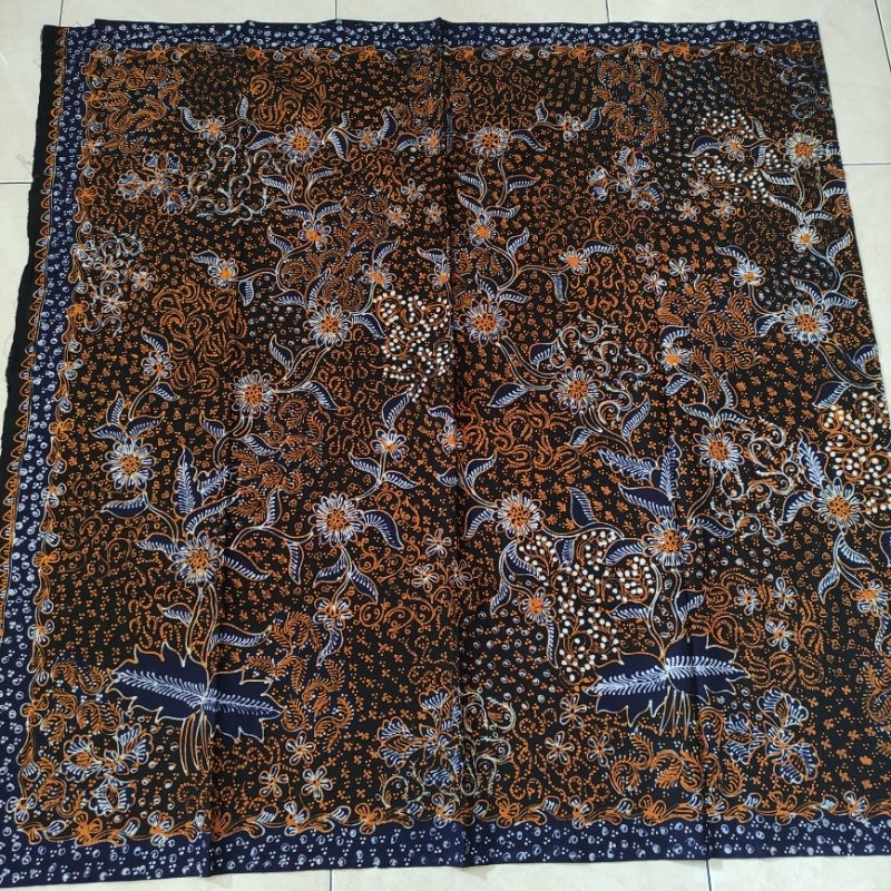 batik tulis lasem klasikan biru gold motif buket bunga