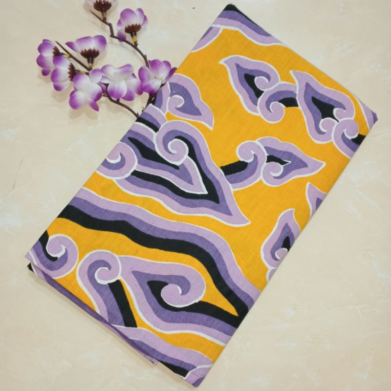 batik.cirebon | Katun PREMIUM | Kain Batik Mega Mendung Kuning Ungu