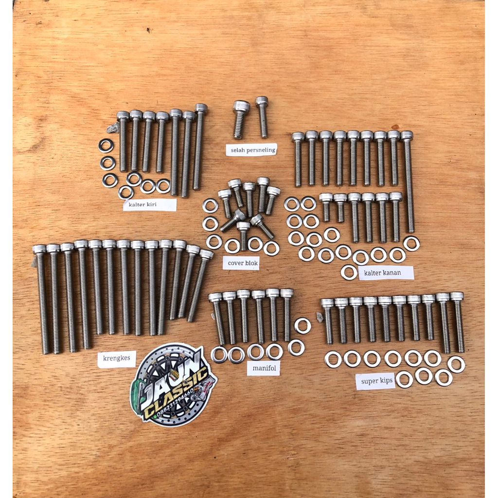 baut L set mesin Ninja 150 RR R SS full stainless steel / baut L full mesin ninja 2 tak r rr ss