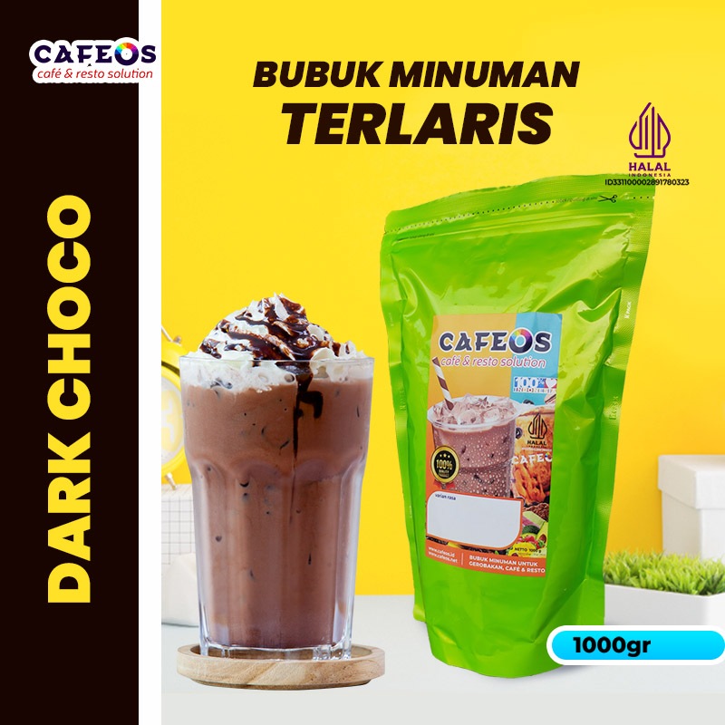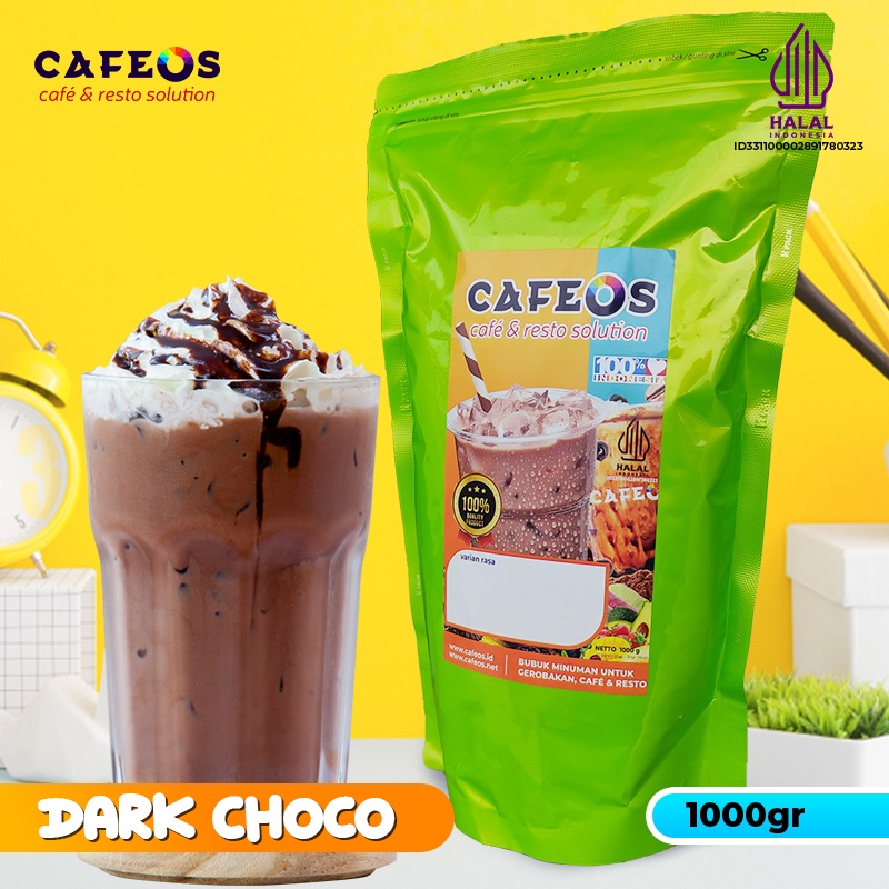CAFEOS Bubuk Minuman Coklat Kekinian Aneka Rasa Dark Choco 1 KG Tanpa Gula Tambahan