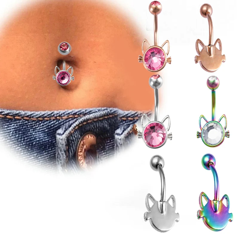 belly piercing Fashion Zirkon lucu pola kucing tindik pusar cantik wanita anting pusar anti karat piercing pusar indonesia perhiasan