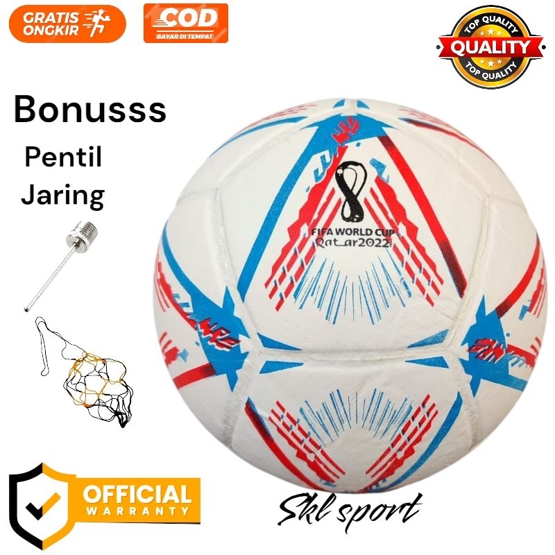 bola sepak/kaki arihla putih Qatar size 5 grtis pentilasi dan jaring bola mainan anak anak