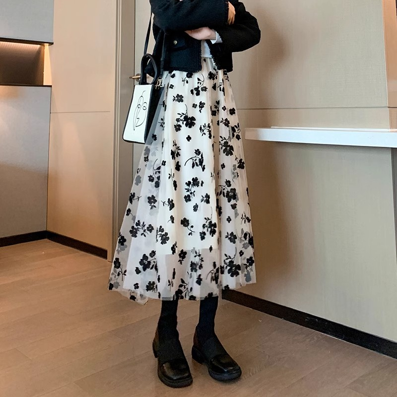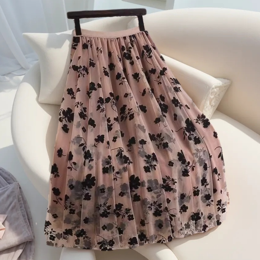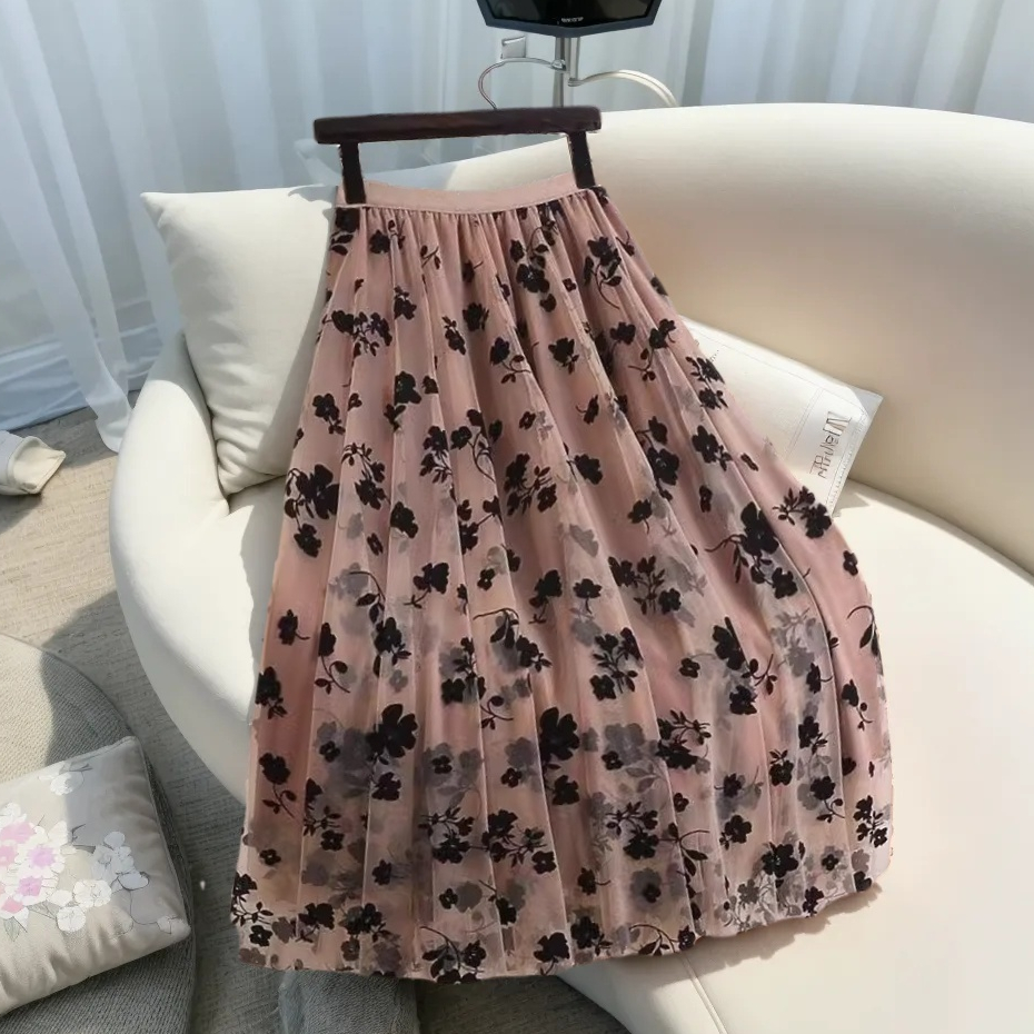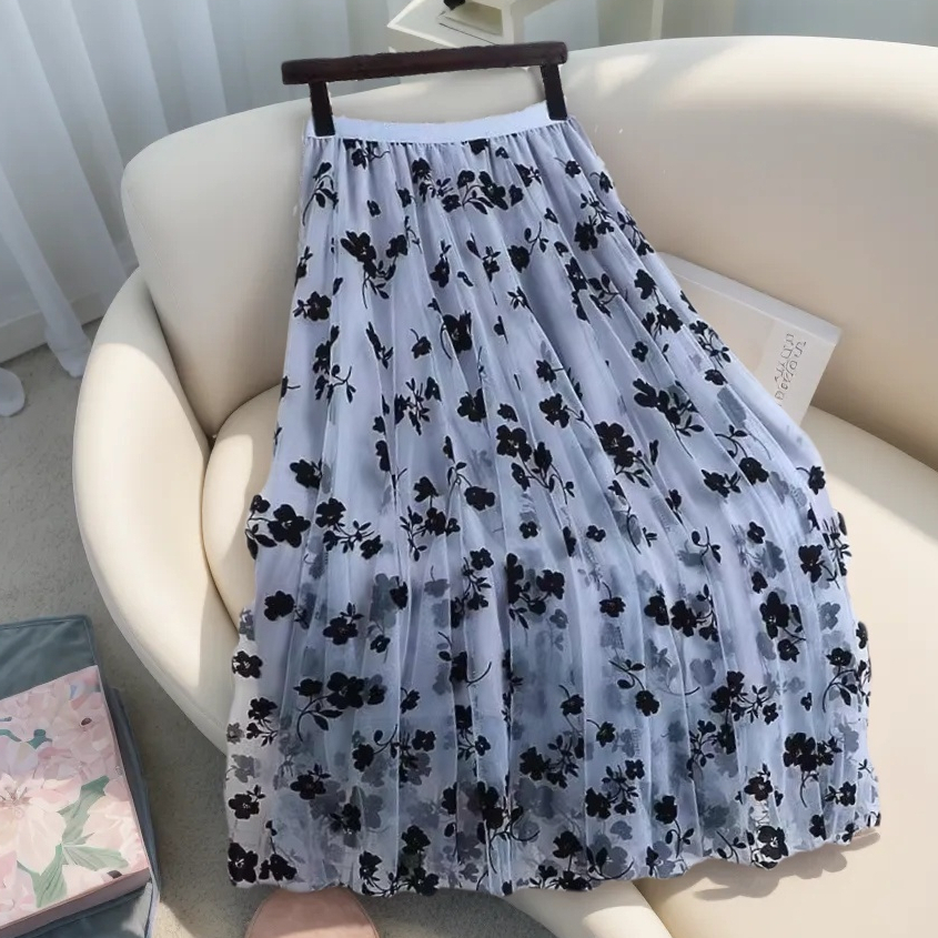 boll.id Rok Tutu Panjang Motif Bunga Rok Korean Style Rok Plisket Premium Maxi Rok Midi Skirt Kekinian