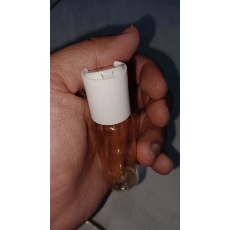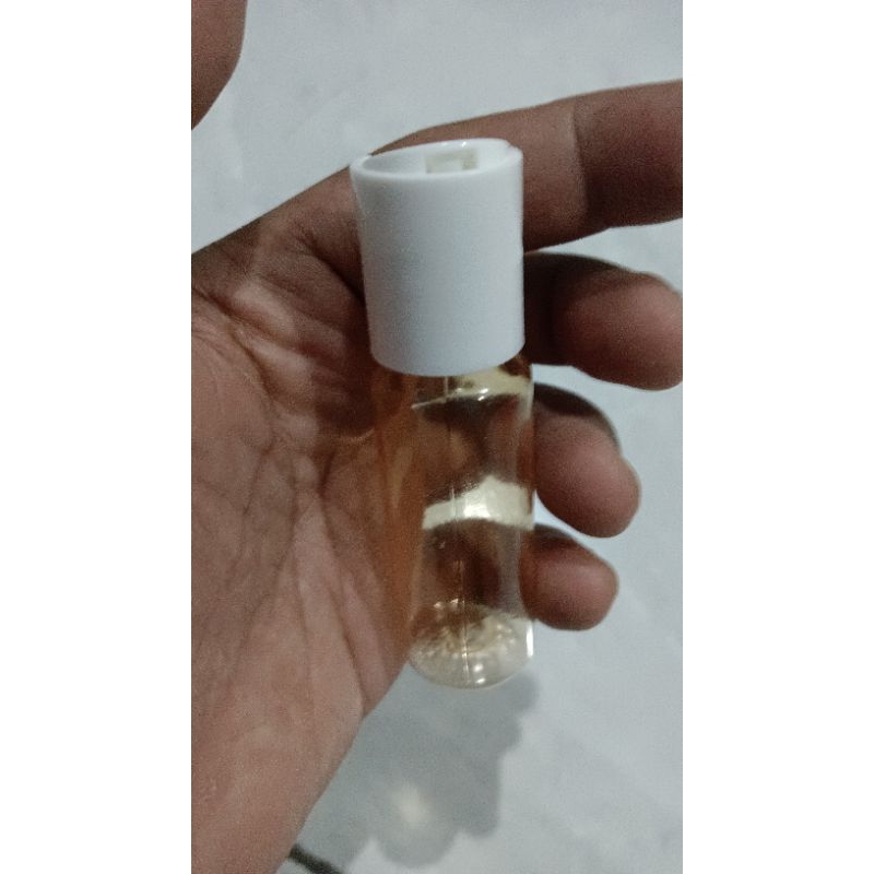 botol 20 ml plastik presstop tekan ke bawah botol minyak angin minyak wangi tutup putih botol orange transparan