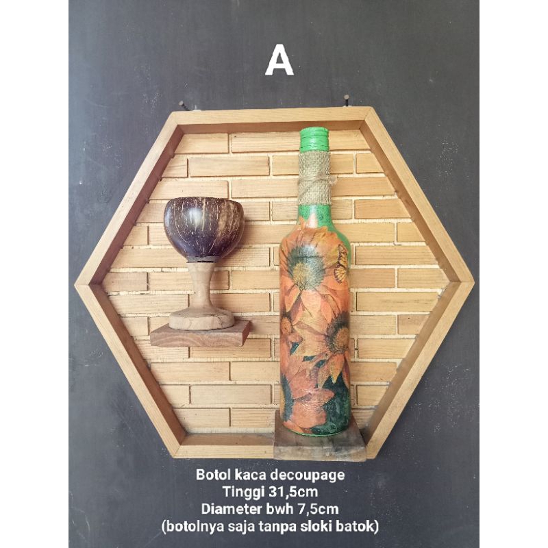 botol/botol kaca/botol decoupage/dekorasi/botol kosong/decoupage/botol hias/pajangan
