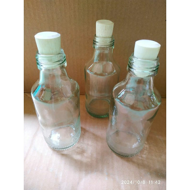 botol kaca 150 ml tutup kayu botol kaca bening botol acesoris