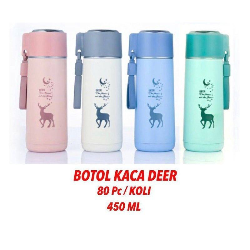 botol kaca motif rusa / botol minum kaca deer rusa / botol minum / botol minum rusa / botol / 450ml