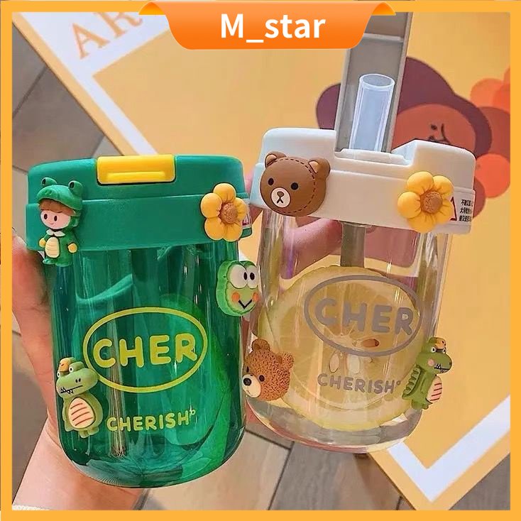 botol minum cher portable 300ml Dengan Sedotan Anti Bocor/Cangkir Kopi Coffee/botol minum anak sekolah mini kecil botol warna botol