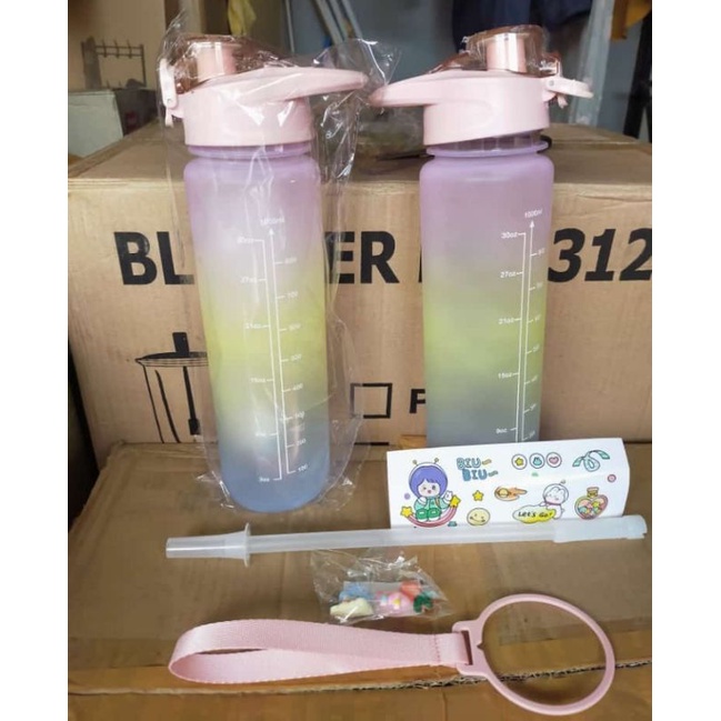 botol minum tritan 1 liter botol viral hits botol gradasi pake sedotan stiker 3 dimensi stiker 2 dimensi pake tali