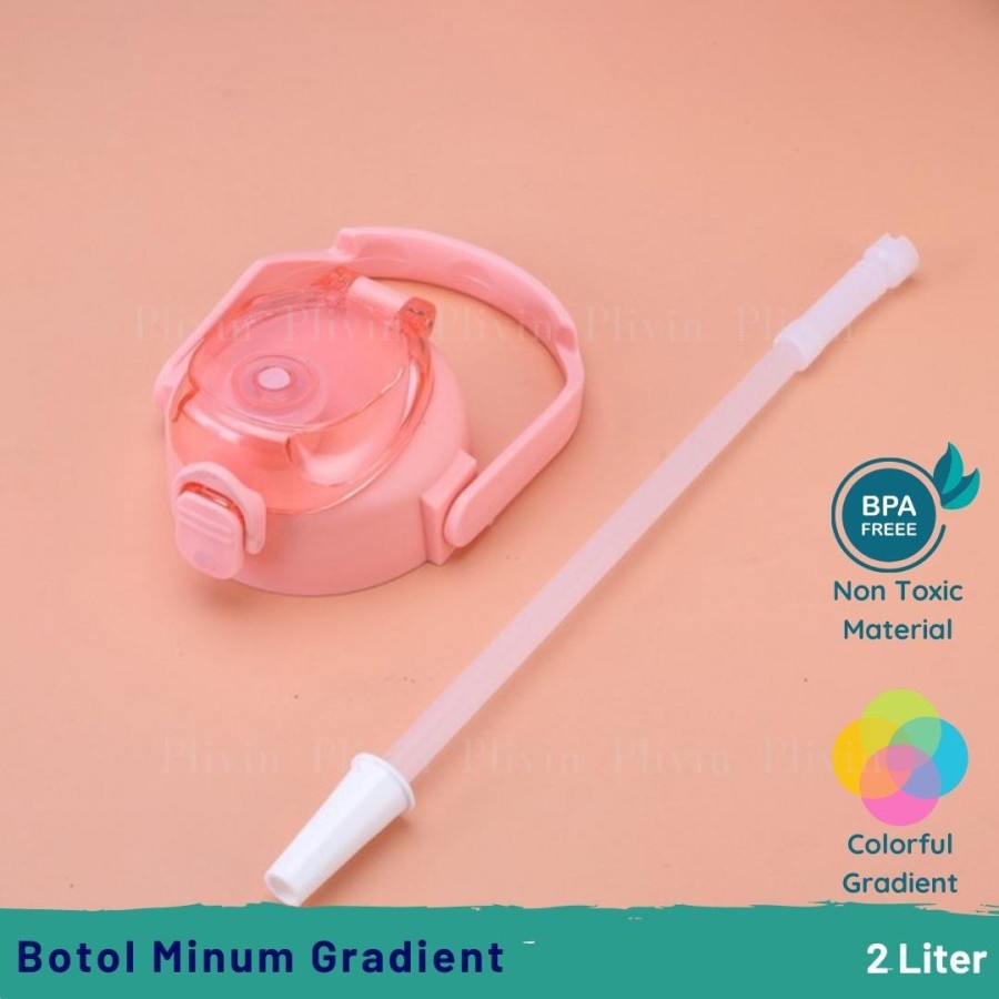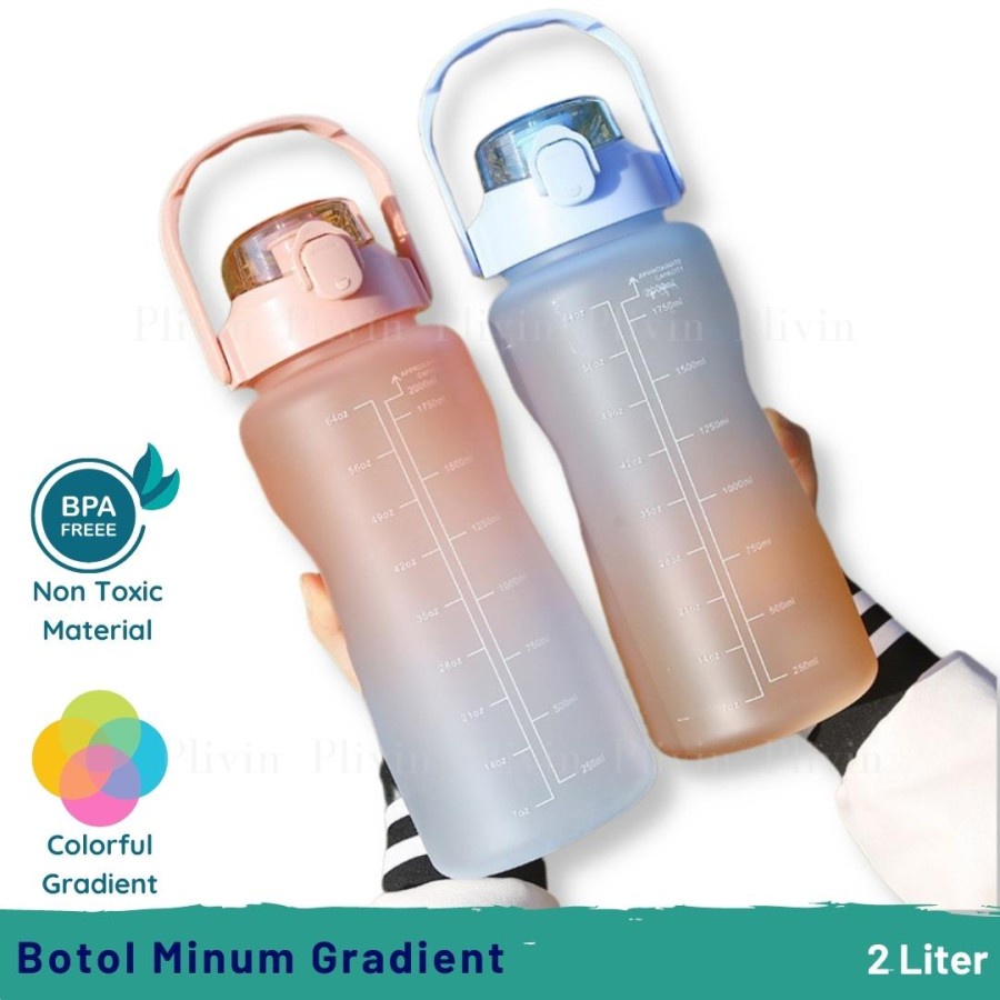 botol minum viral tiktok / botol air minum 2 liter/Botol Minum Viral Penanda Waktu Warna Gradiasi