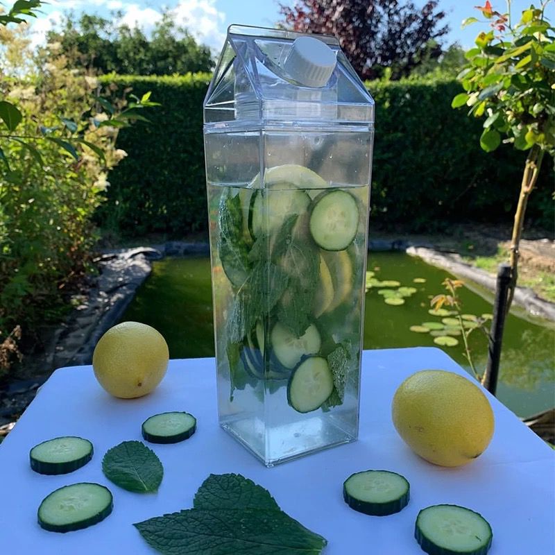 botol minuman pitcher plastik transparan model karton susu juice softdrink / milk coffee jug water bottle camping portable / botol tempat minum kulkas soft drink ( BISA CUSTOM LOGO )