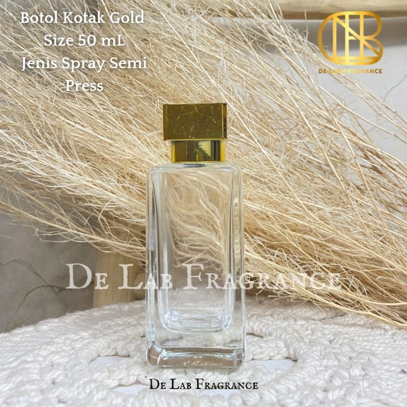 botol parfum ateli*r tutup kotak gold 50 ml semi press / botol parfum persegi panjang 50 ml