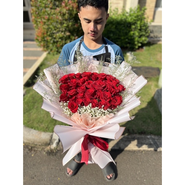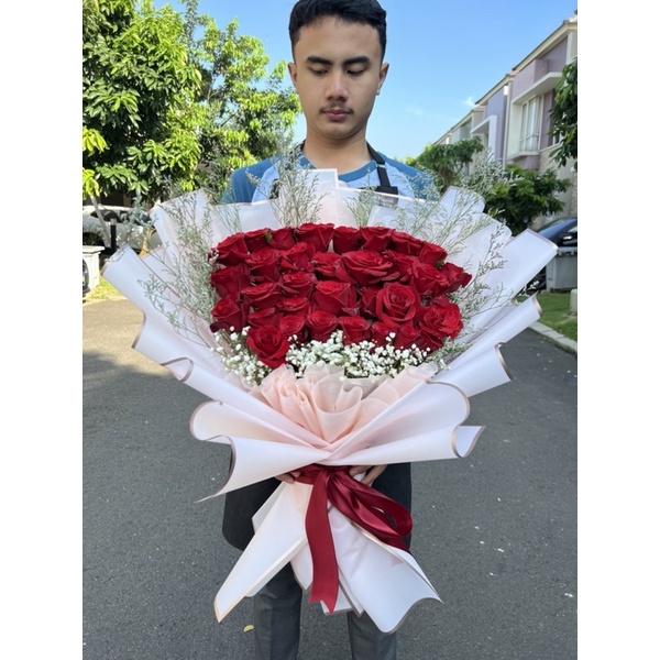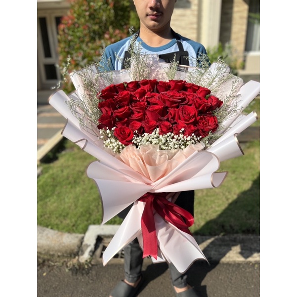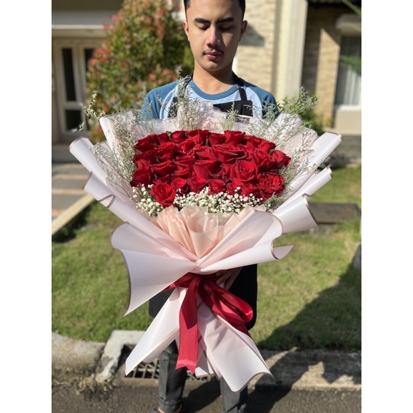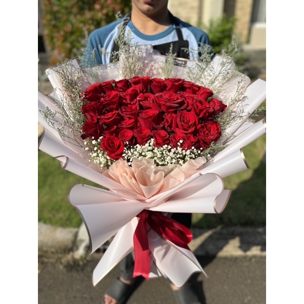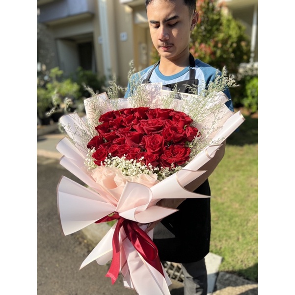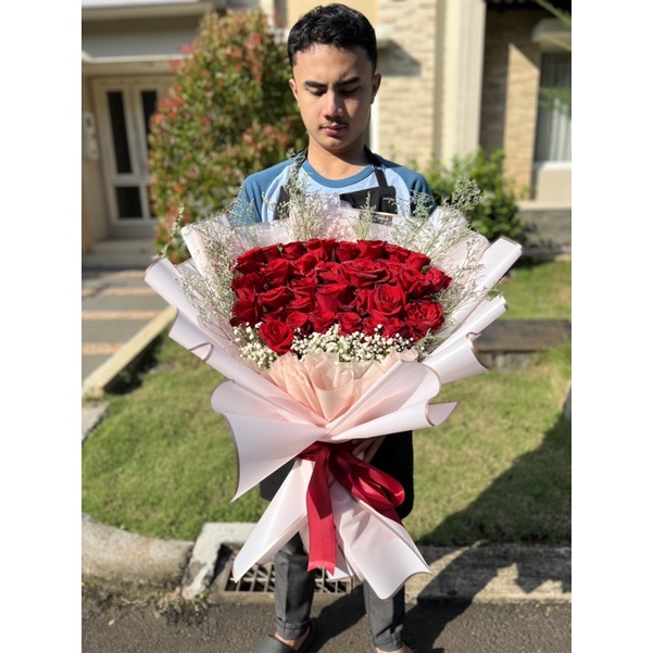 bouquet red roses fresh flower rangkaian mawar merah edisi anniversary