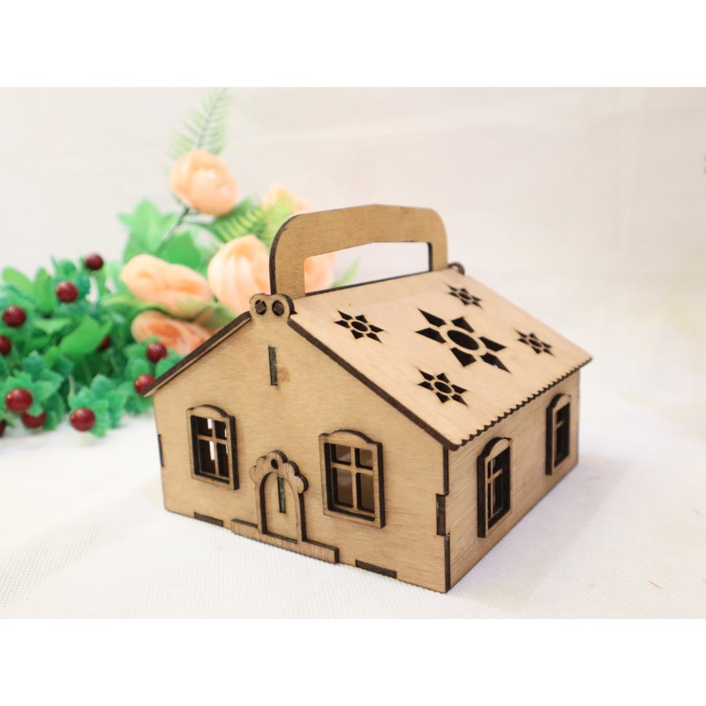 box kayu rumah, keranjang kayu unik mini lucu aesthatic, mainan anak, kerajinan kayu laser cuting produk lokal umkm, miniatur rumah kayu