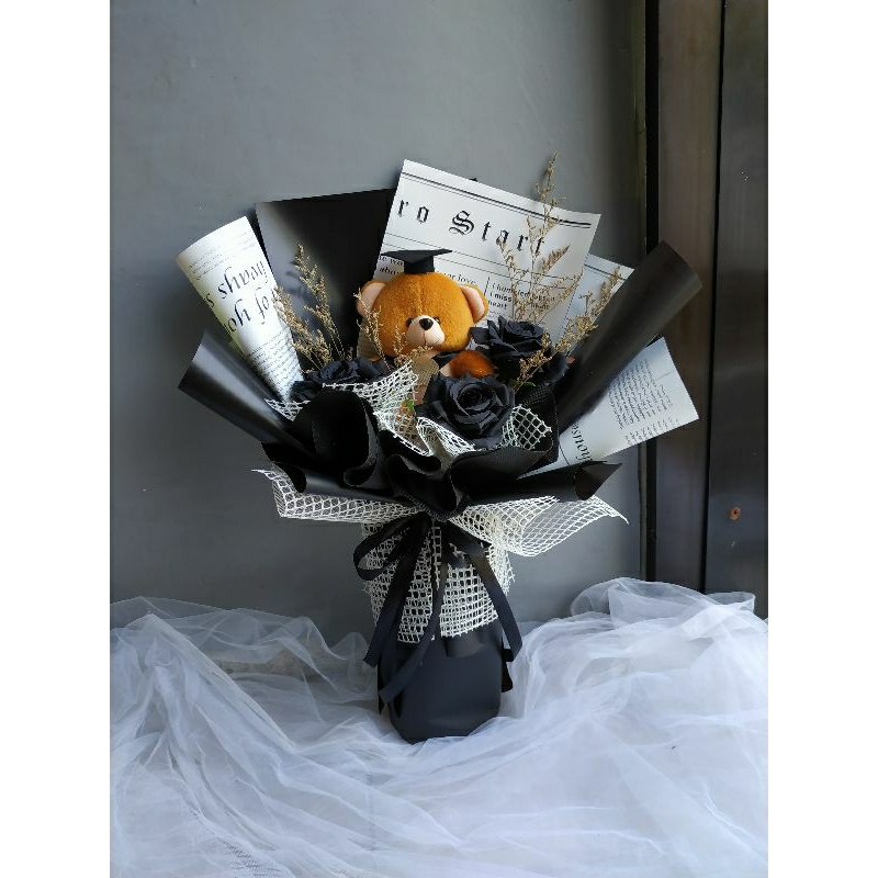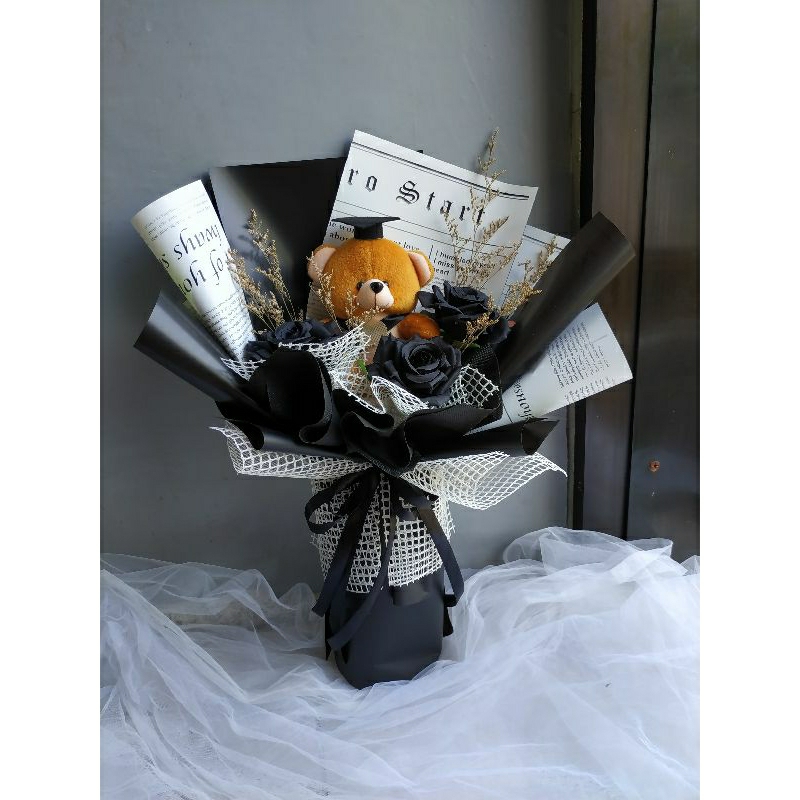 buket bunga black rose mawar hitam artificial boneka wisuda