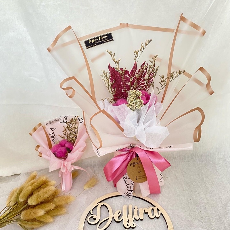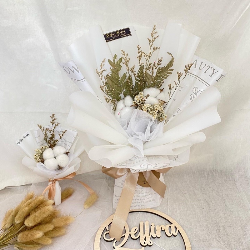 buket bunga kapas/buket bunga kering/rustic/buket wisuda/buket ultah
