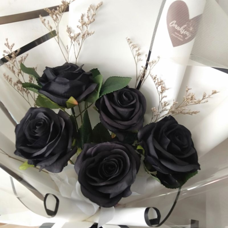 buket bunga mawar hitam premium, black roses, buket wisuda cowok, buket monochrome, buket hitam putih, anniversary, lamaran, tunangan, pernikahan