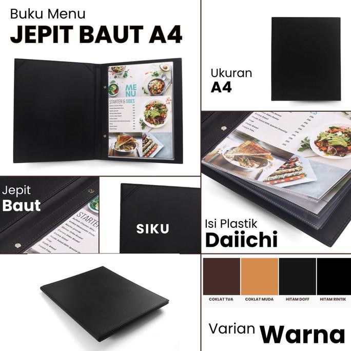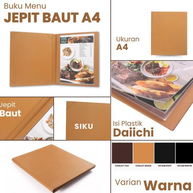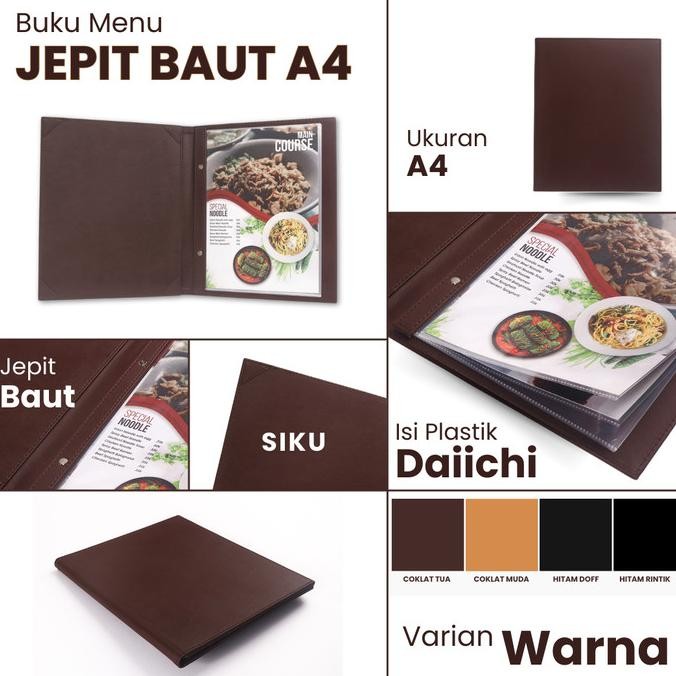 buku menu jakarta - buku menu kulit jepit baut isi plastik daiichi a4 hitam, coklat muda, coklat tua - cafe, coffee shop, restoran, hotel !!