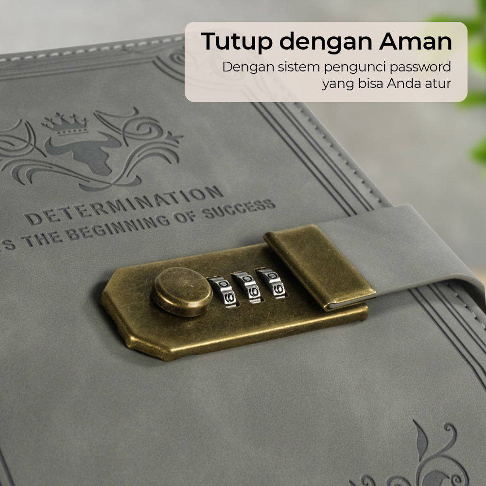 buku vintage/ Buku Catatan Harian Notebook Cover Kulit Kunci Password A5/ buku notebook/ buku Spiral / buku diary/ jurnal/buku gembok