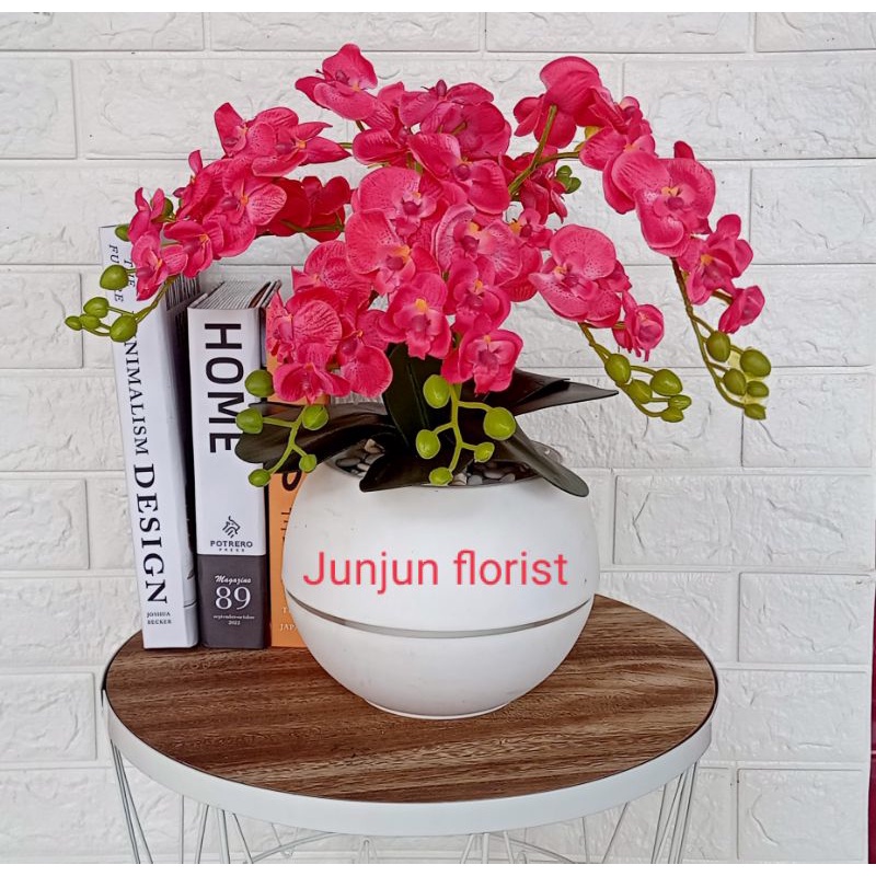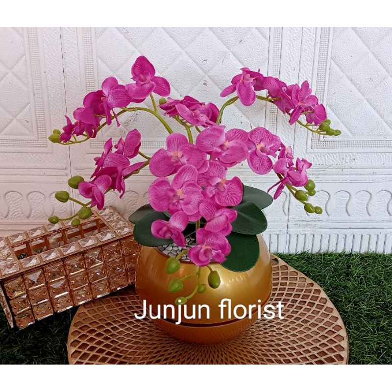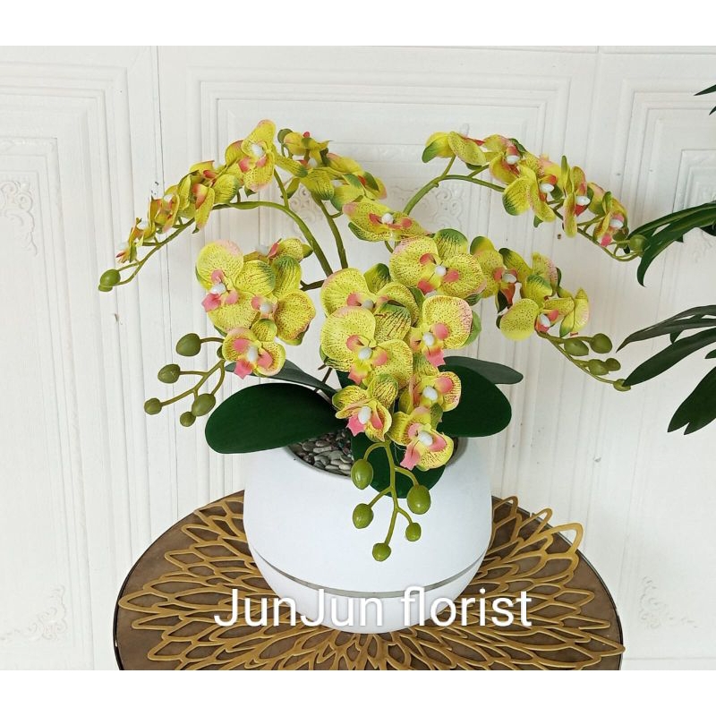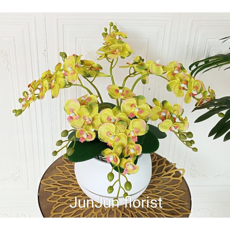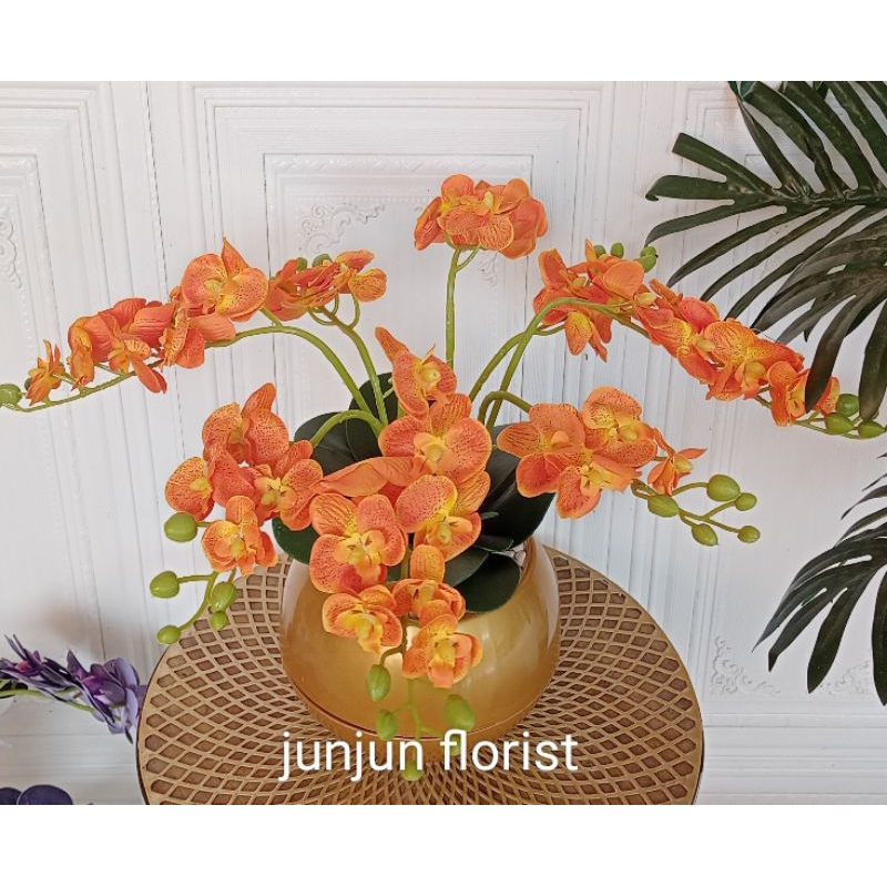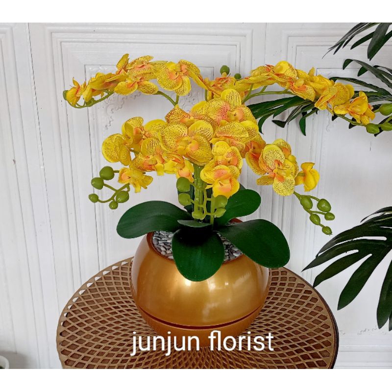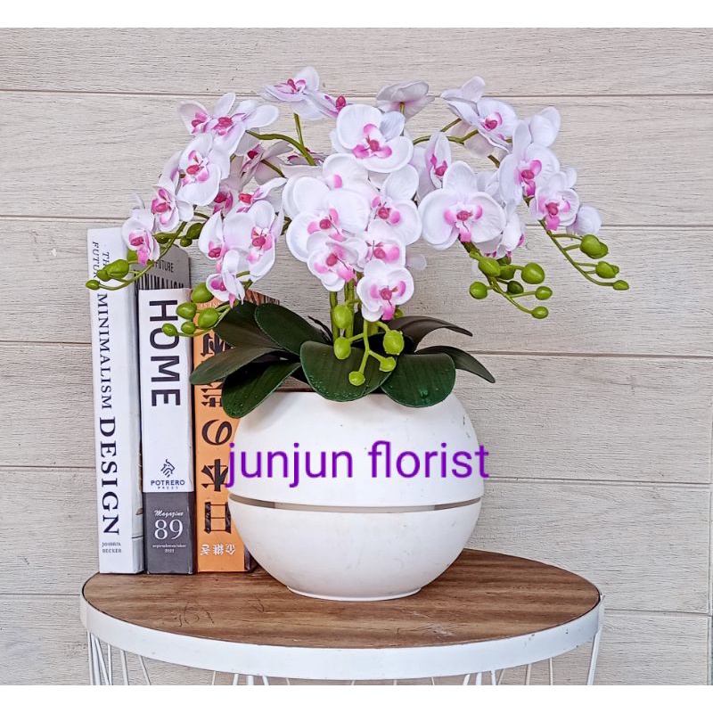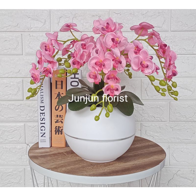bunga anggrek bulan kain artificial pot Bola//bunga anggrek plastik//anggrek hias murah pot bola