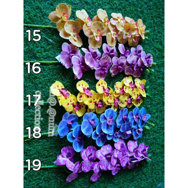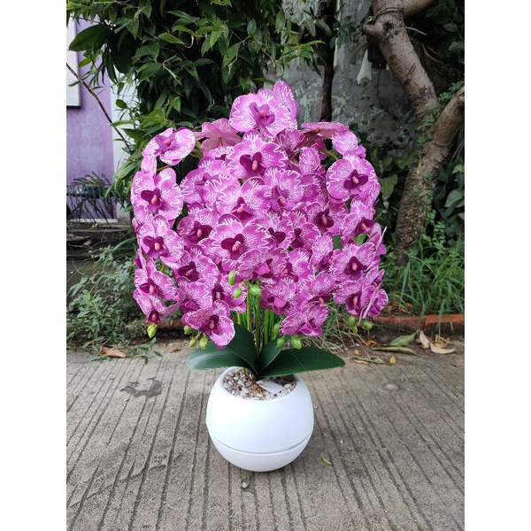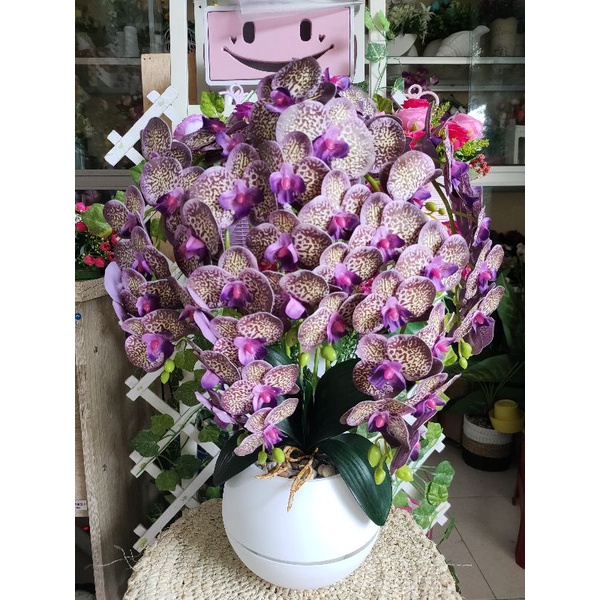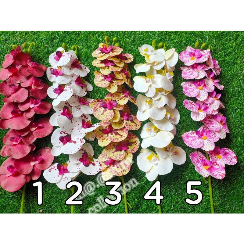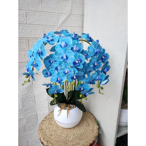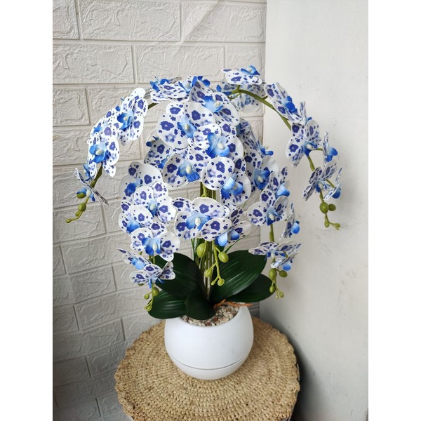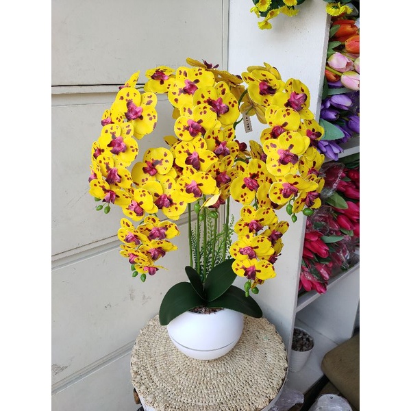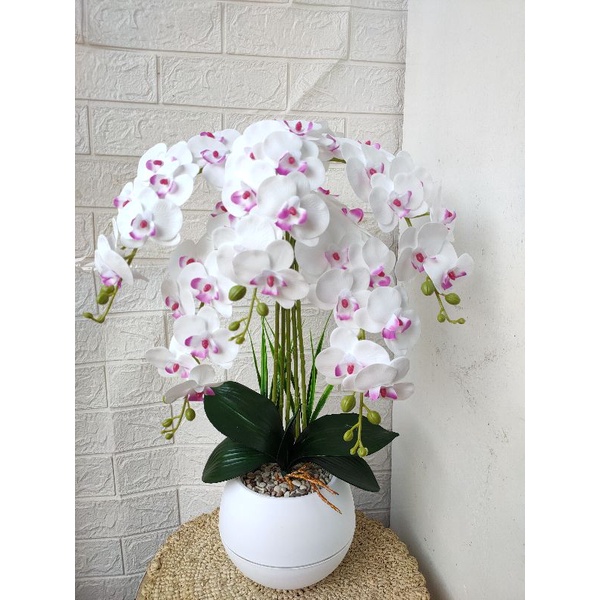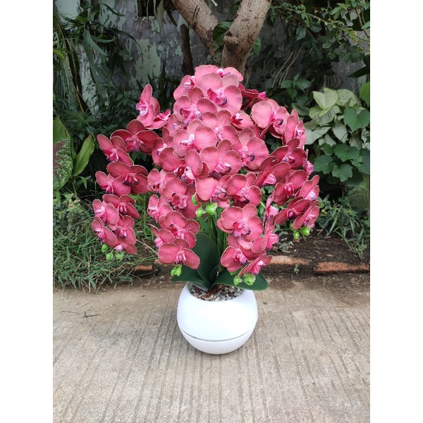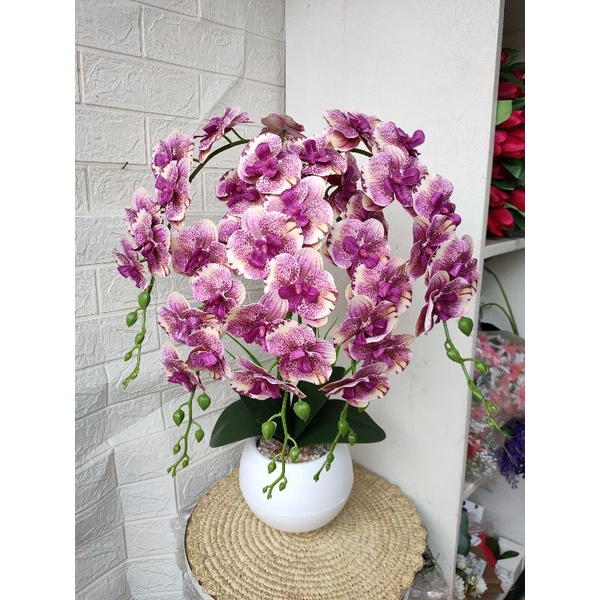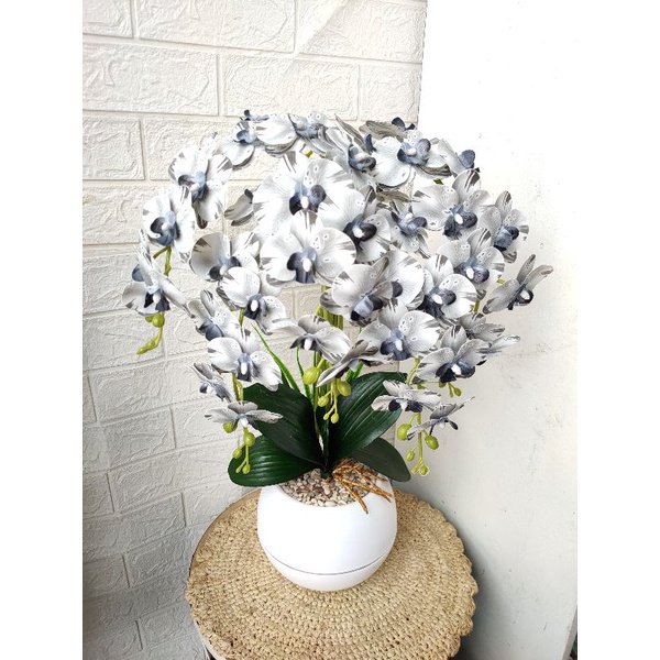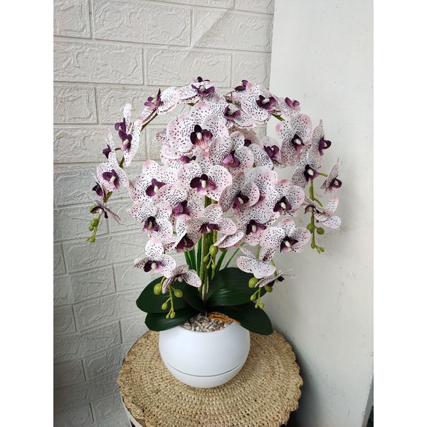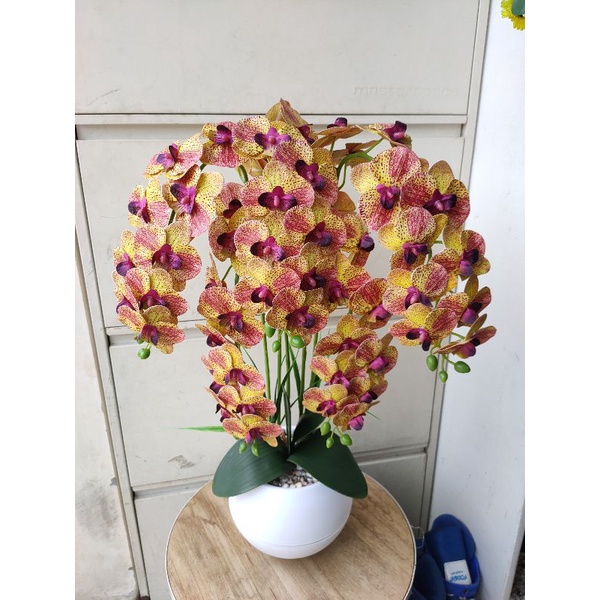 bunga anggrek latex 5 tangkai super rimbun pot bola