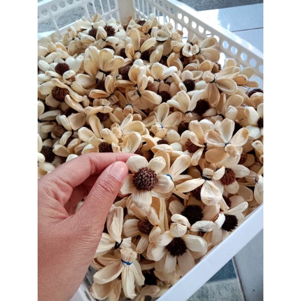 bunga klobot kulit jagung/ bunga kering/ bunga hiasan mahar/ bunga hampers (bunga melati pompom)