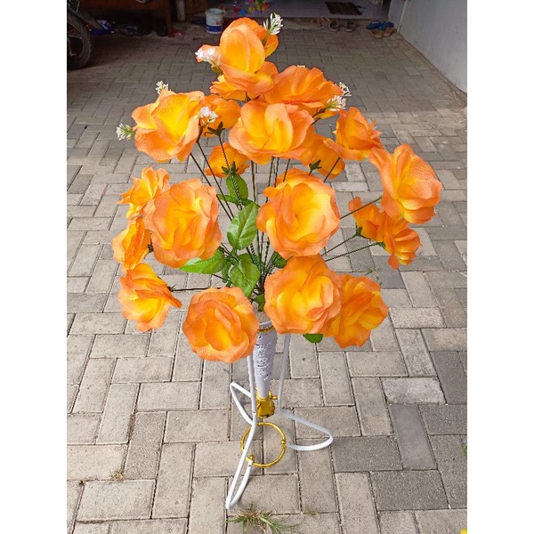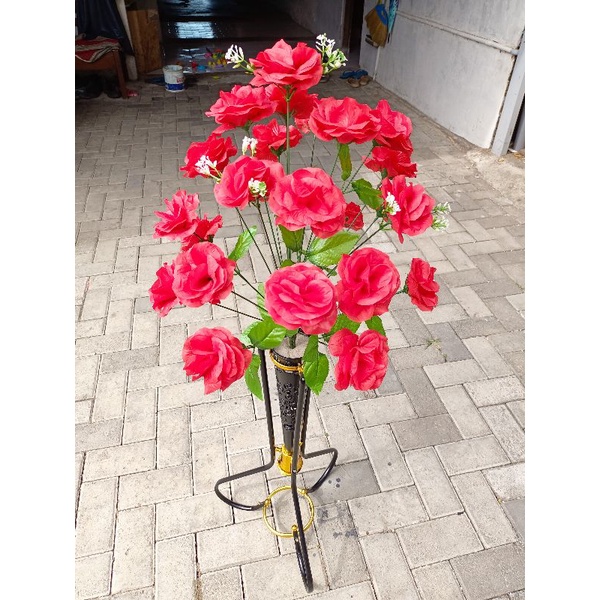 bunga mawar artificial cabang 24 / bunga mawar tiruan murah / bunga mawar dekorasi / bunga mawar besar kuntum cabang 24 panjang 67cm