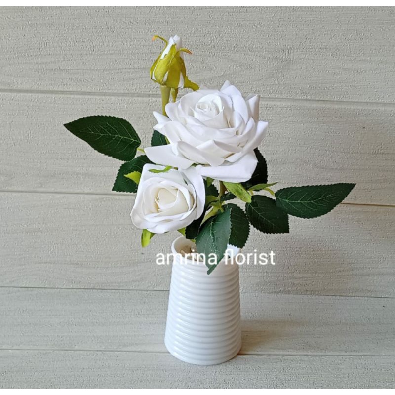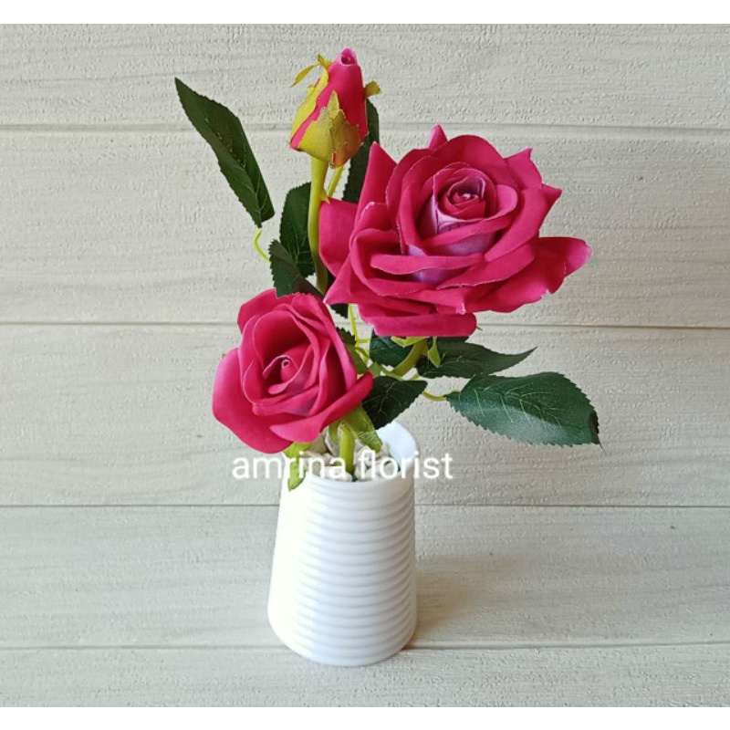 bunga mawar bludru besar vas ulir pendek//bunga mawar arteficial bahan bludru