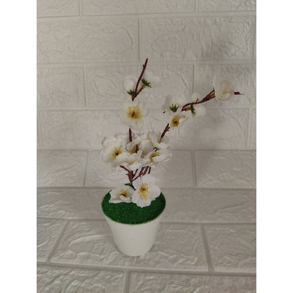 bunga sakura pink/ bunga meja mini / hiasan rumah aesthetic / bunga sepaket vas / bunga dan pot