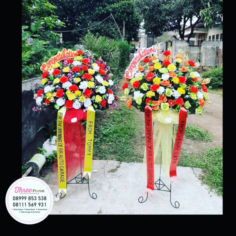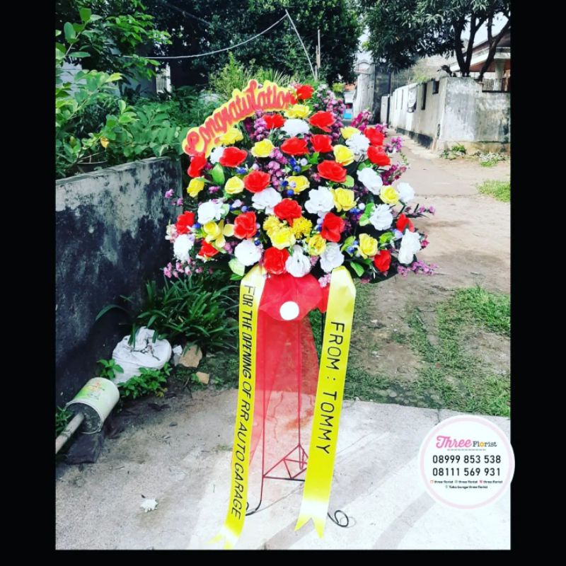 bunga standing congratulation / bunga standing ucapan / hadiah grand opening / hadiah ucapan pembukaan usaha baru / bunga standing fresh / bunga standing artificial