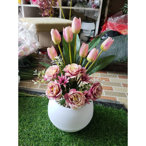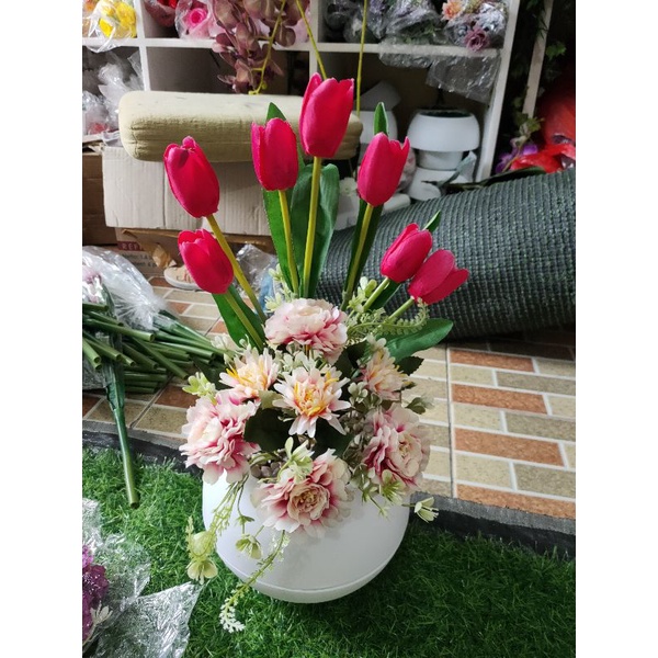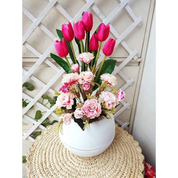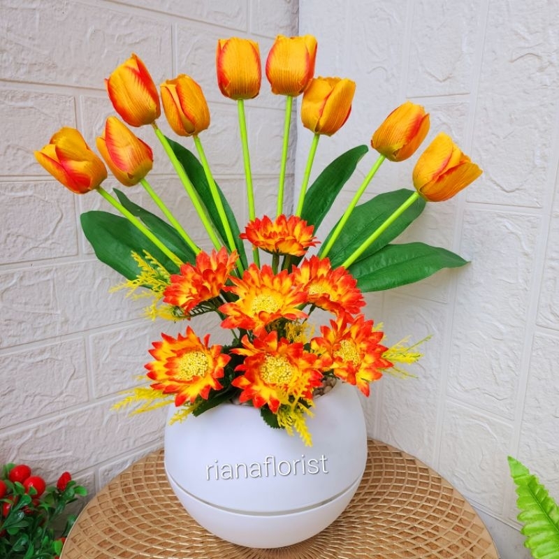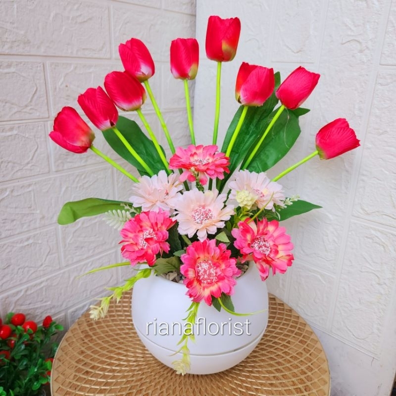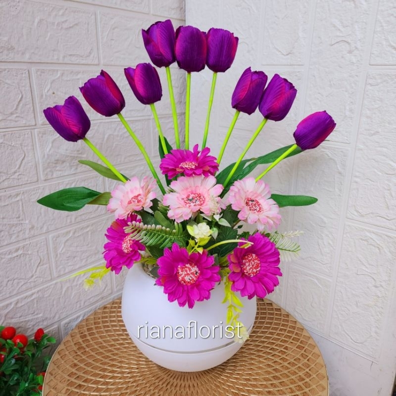 bunga tulip combinasi vas bulat besar