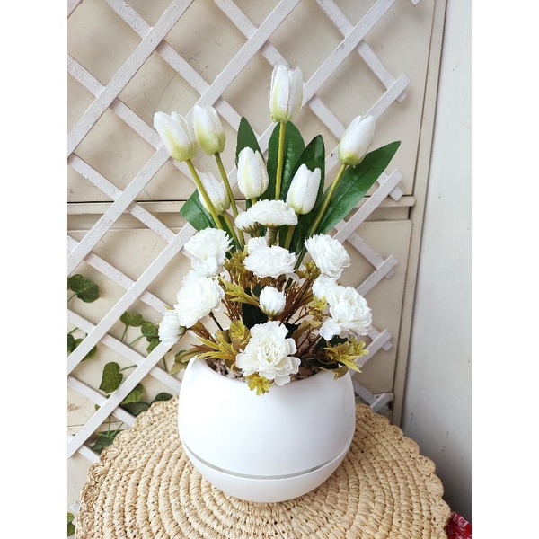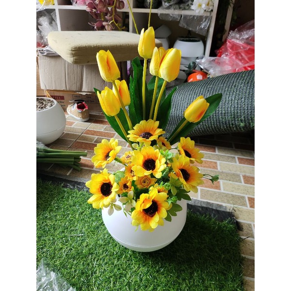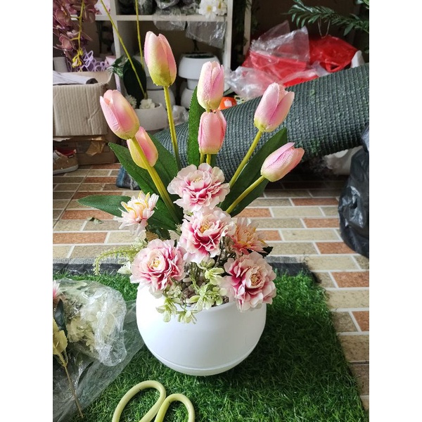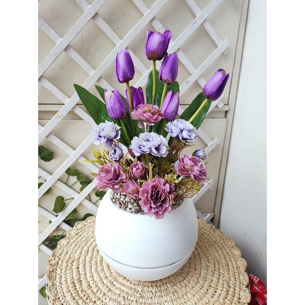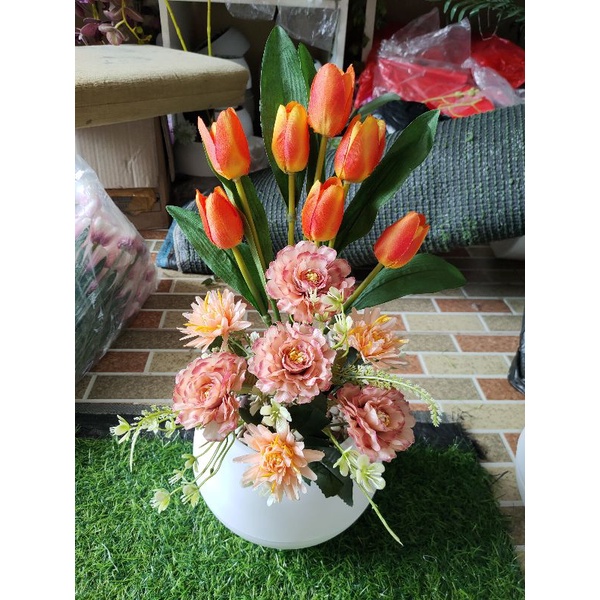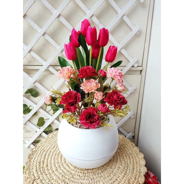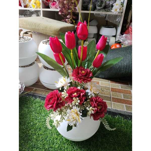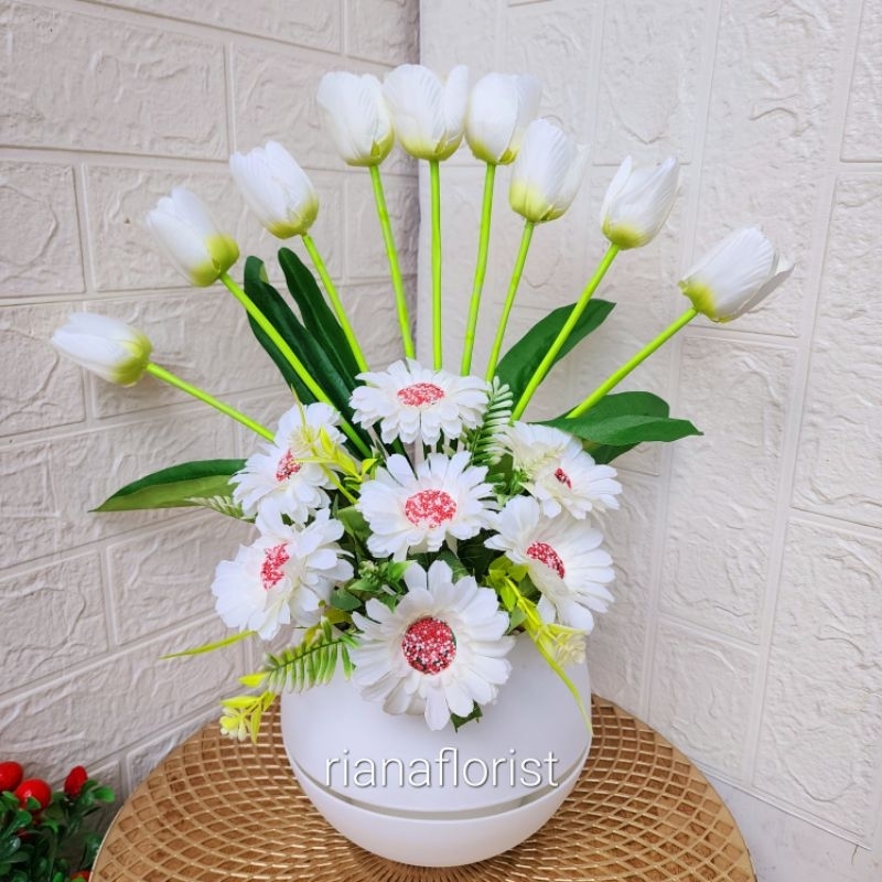 bunga tulip combinasi vas bulat besar
