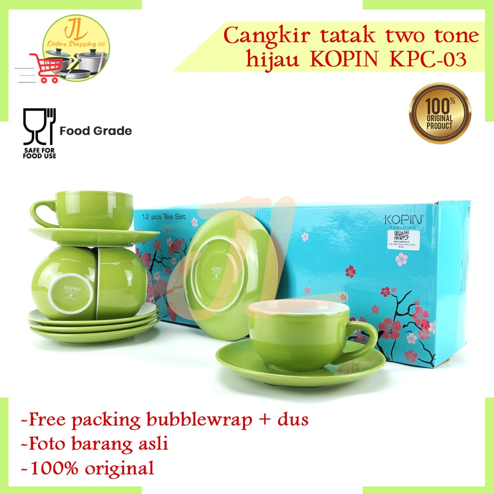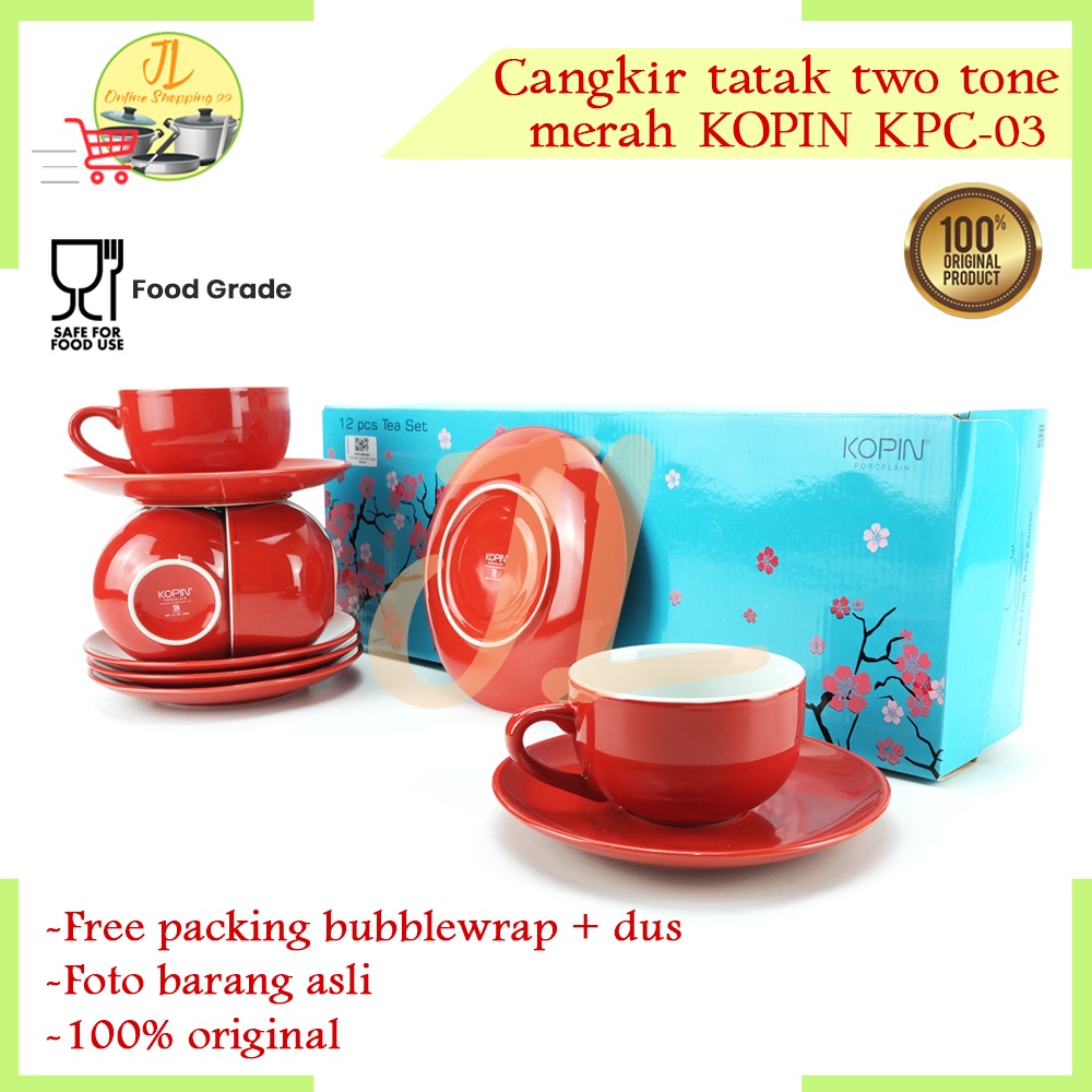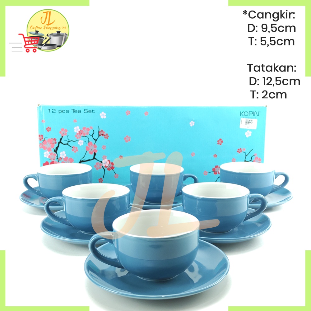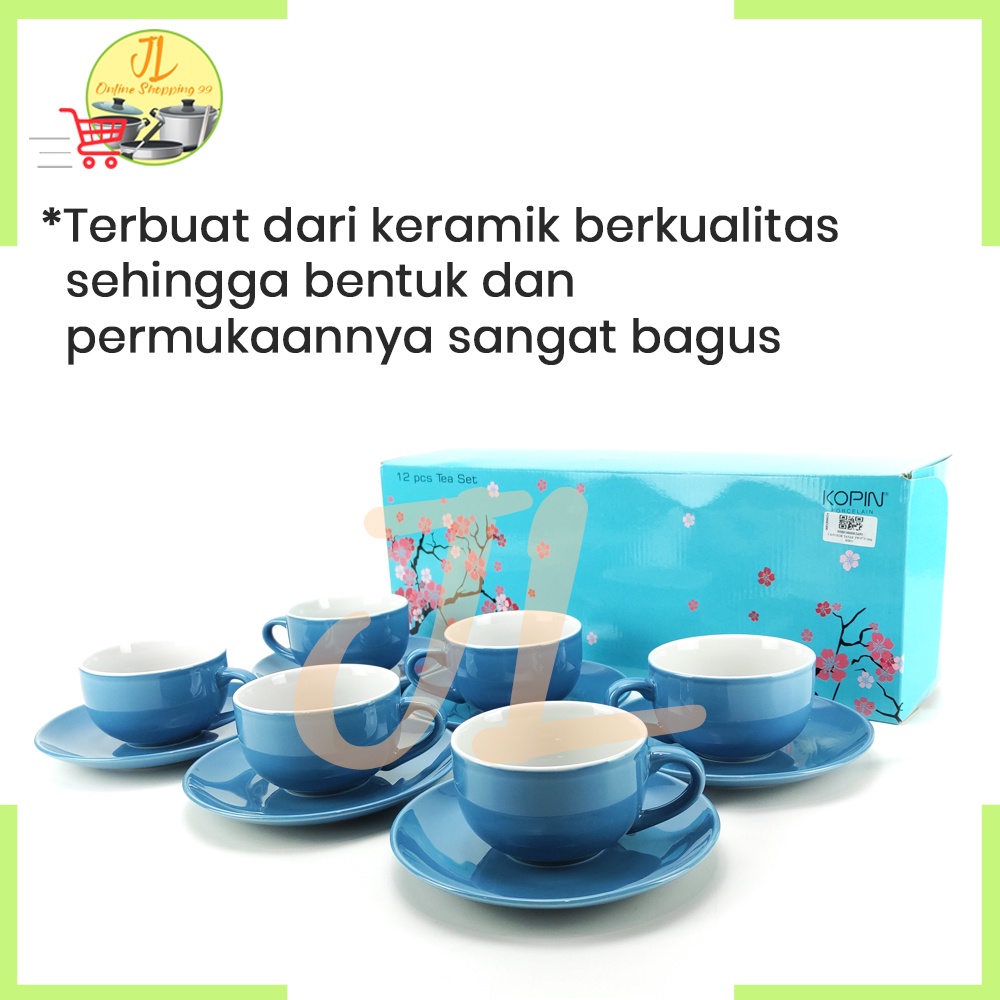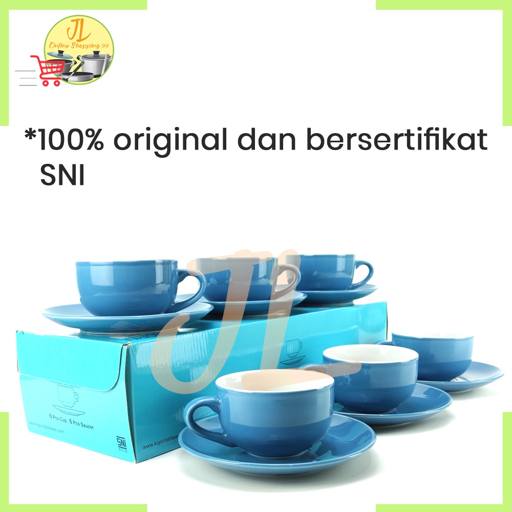 cangkir gelas kopi / cangkir tatak warna biru 6 pasang / tea set / coffee set / KPC-03 TWO TONE KOPIN