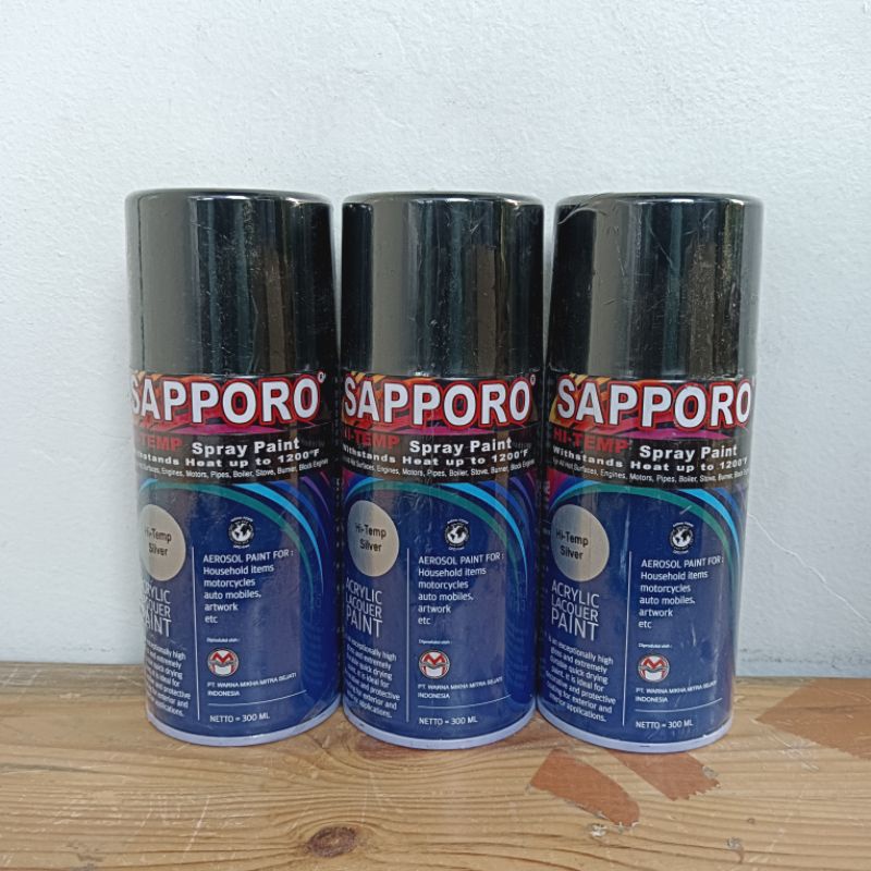 cat spray pilok pilox sapporo hi-temp silver 300ml pilok anti panas silver pilok hi temp pilok knalpot mesin bak kopling 300ml
