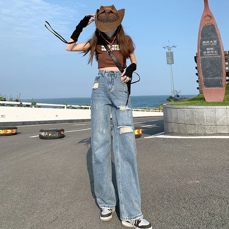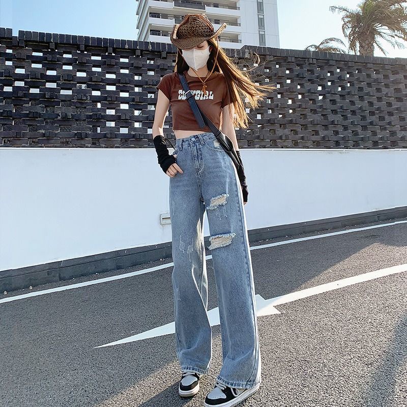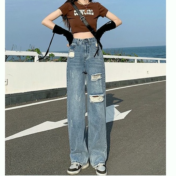 celana jins wanita kekinian straight jeans celanan jeans high waist wanita korean style jeans wanita ripped jeans cewek ootd fashion ripped jeans wanita