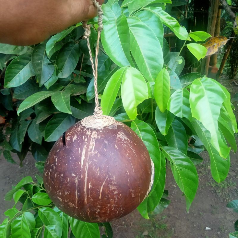 celengan gantung batok kelapa unik jadul natural alami tempurung kelapa