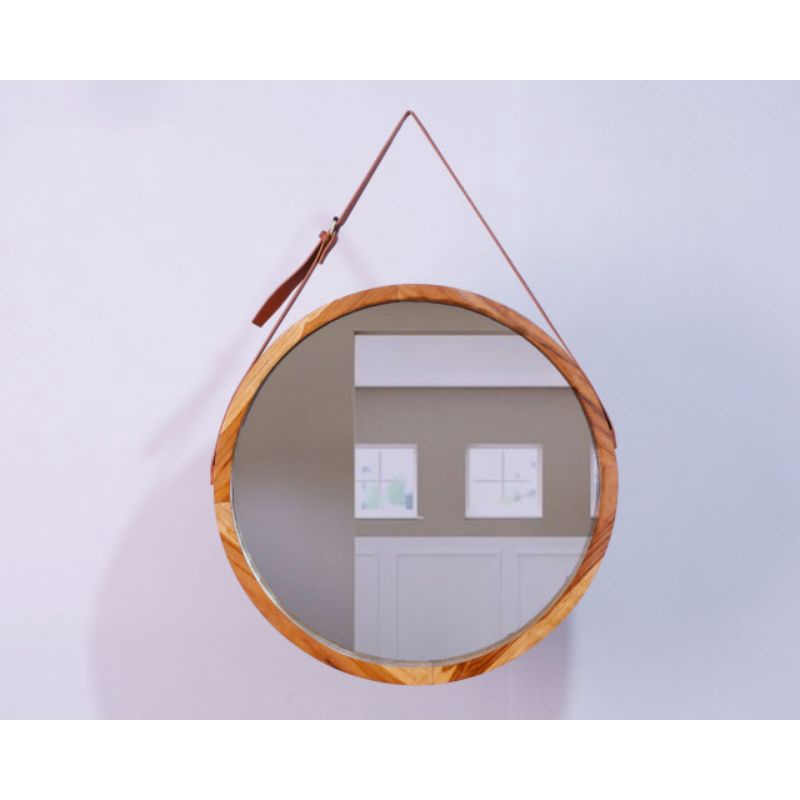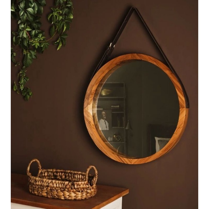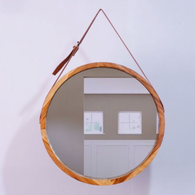 cemin bulat, cermin kayu, cermin rotan, cemin aesthetic, cermin dining