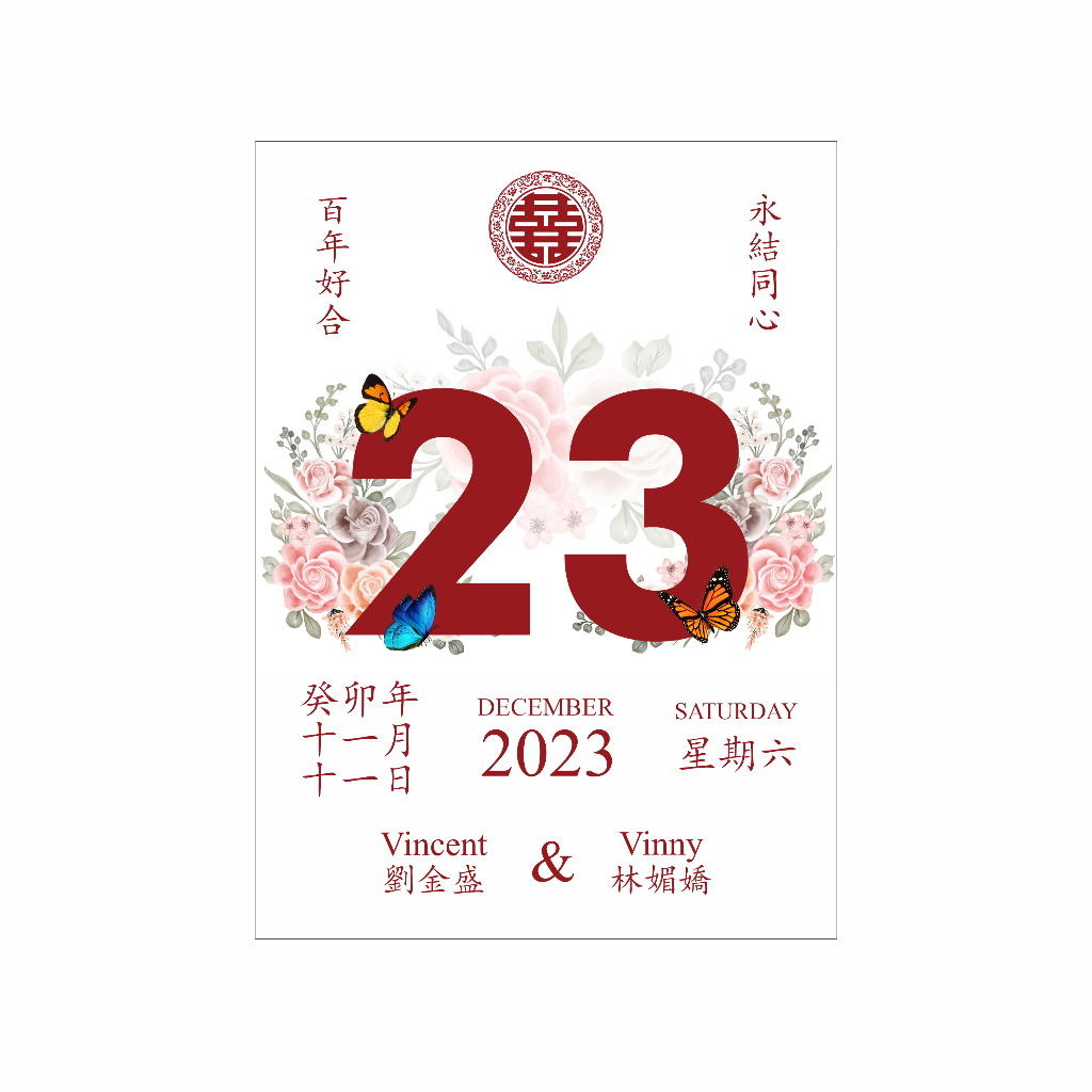 cetak pajangan kalender tunangan / pernikahan chinese dengan bingkai akrilik magnet desain minimalis
