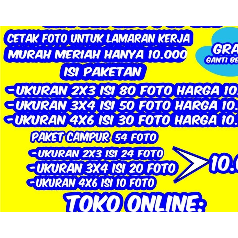 cetak pass foto 3x4 lamaran kerja 2x3,3x4,4x6 murah