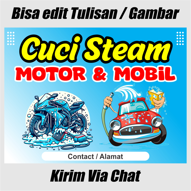 cetak spanduk banner cuci steam mobil motor benner cuci steam carwash custom