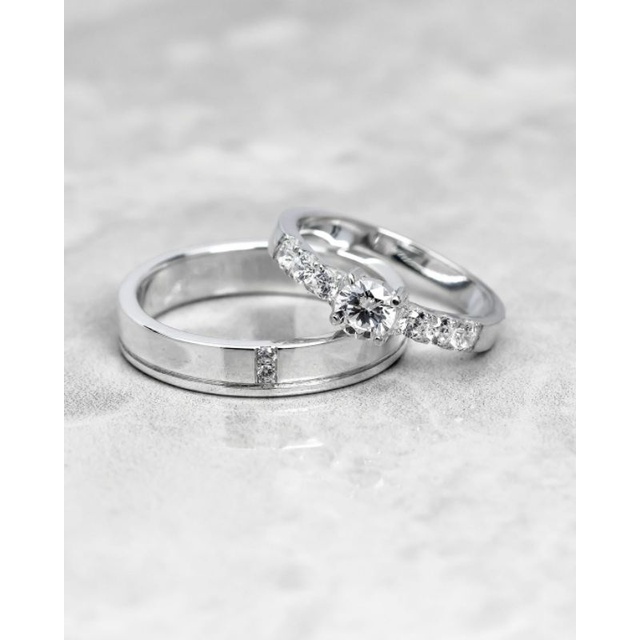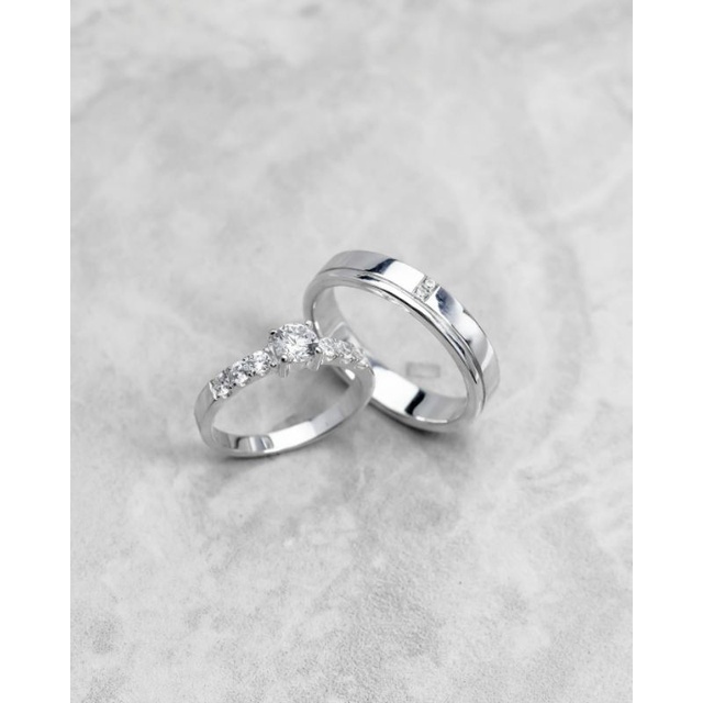 cincin couple emas putih / cincin nikah / cincin tunangan / cincin kawin perak murni / handmade