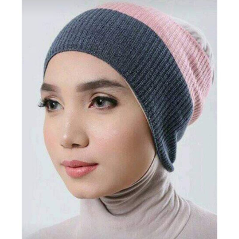 ciput rajut 2 warna anti pusing