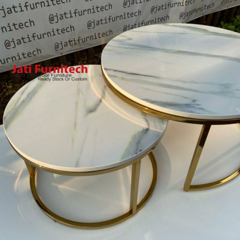 coffe table stainless - diameter 80 60 - top marmer calatta gold