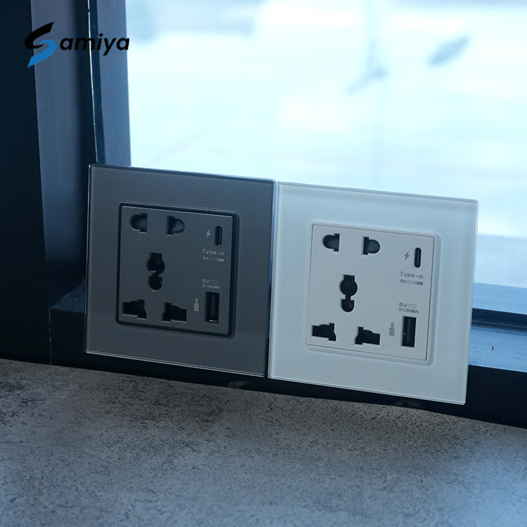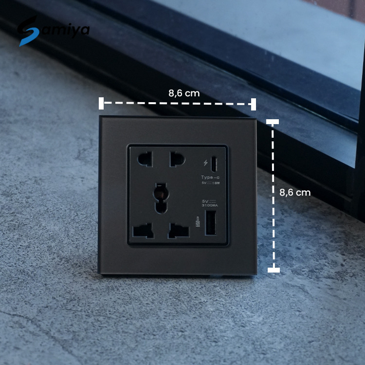 colokan listrik lengkap power socket 2in1 USB charging TYPE A TYPE C / stop kontak premium international universal lubang kaki 2 dan kaki 3