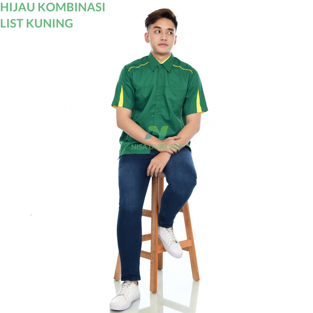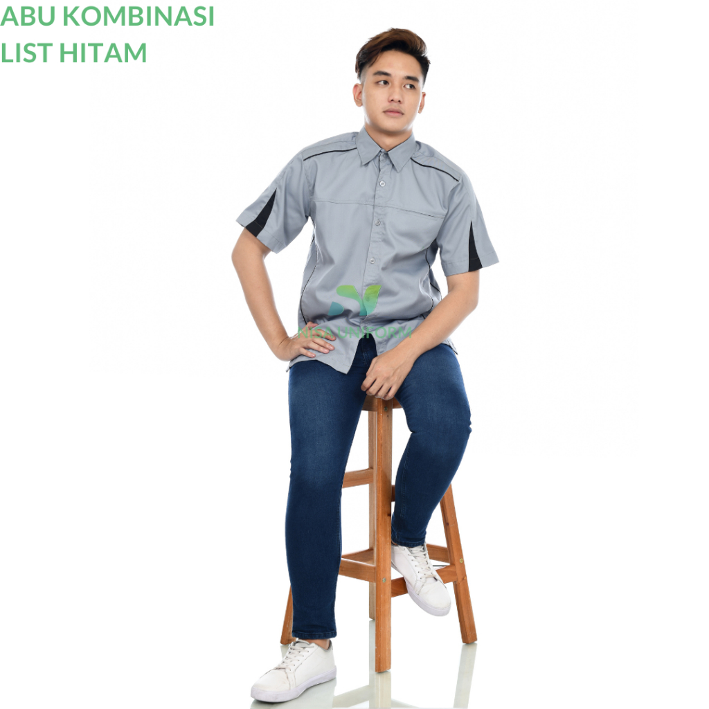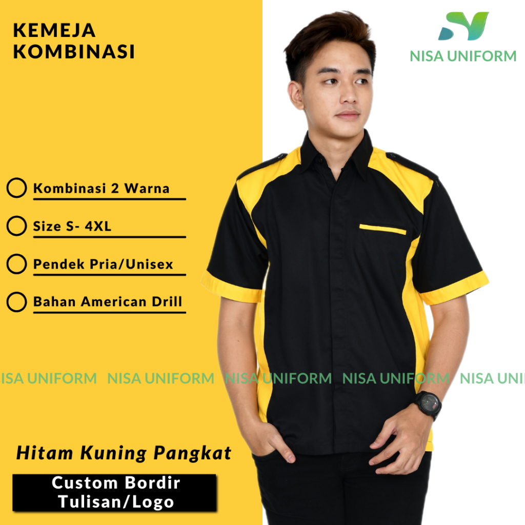kemeja kombinasi pria/baju kerja tangan pendek/baju karyawan kantor/baju karyawan perkantoran bordir