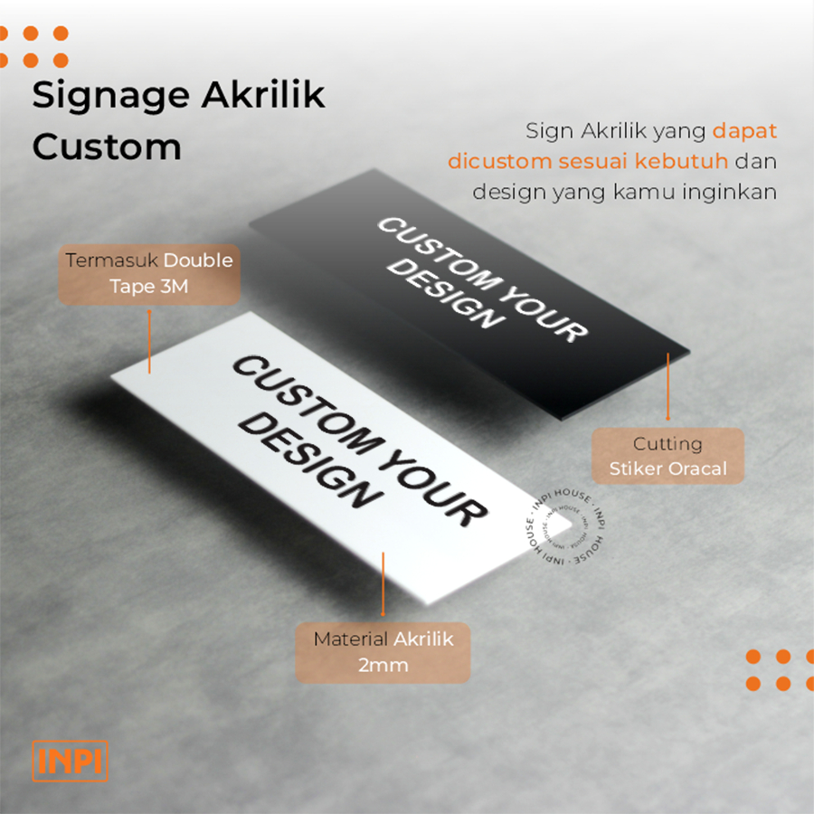 INPI HOUSE Custom Signage - Papan Tanda Desain Custom , Tulisan , Logo - Akrilik 8x22cm