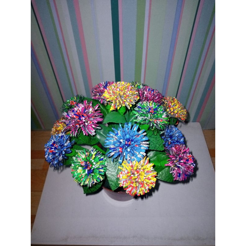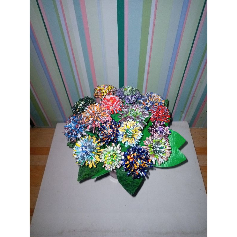 daur ulang plastik kemasan/bunga hias dari plastik bekas/kerajinan sekolah/dekorasi rumah