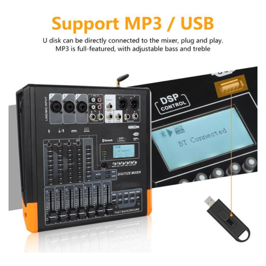 digital mixer audio dengan fungsi bluetooth USB live sound rss