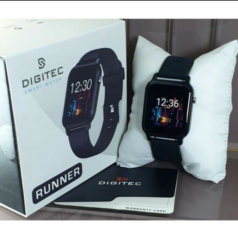 digitec runner smartwatch pria dan wanita jam kesehatan kotak slim ramping ukuran sedang
